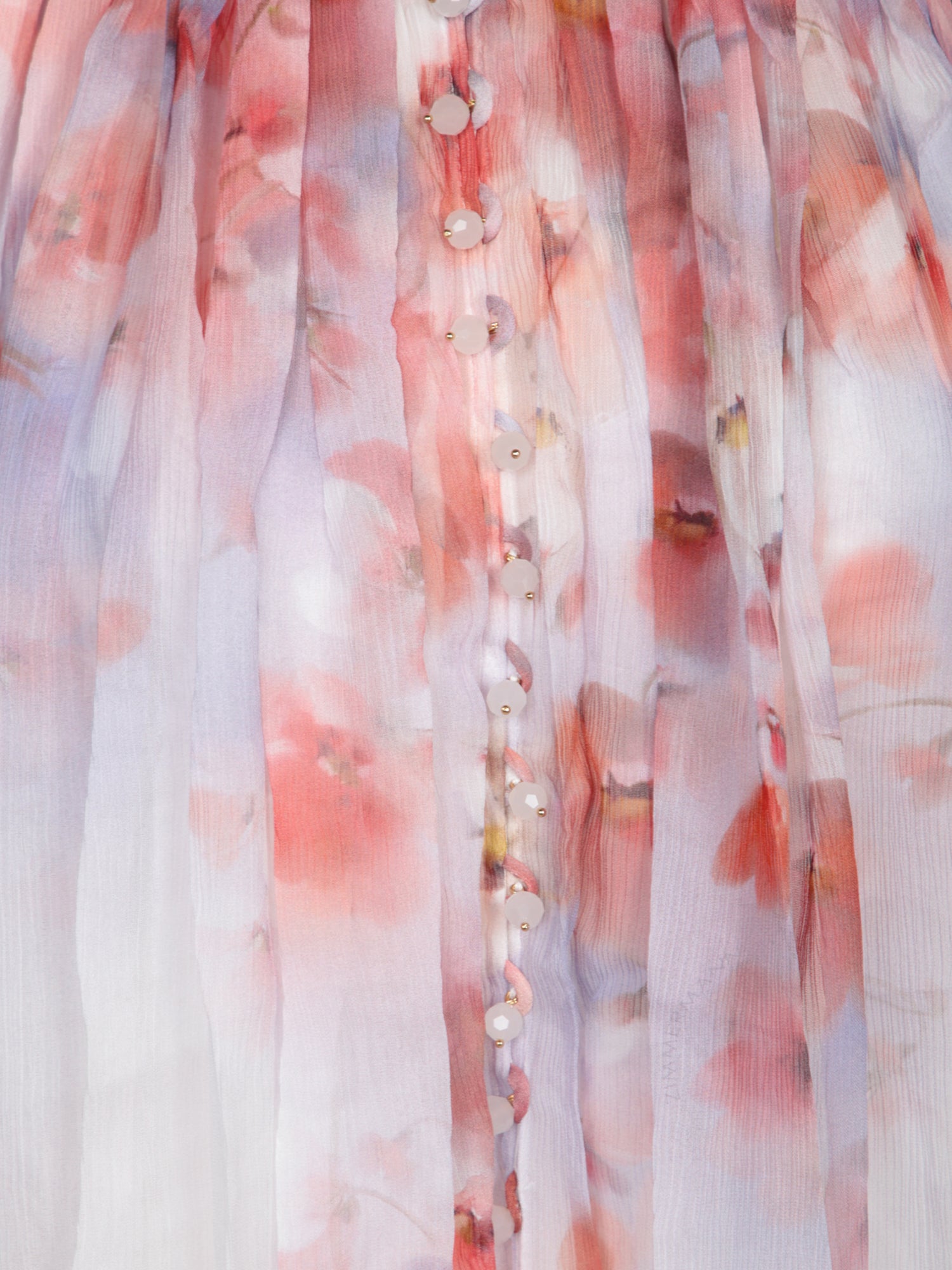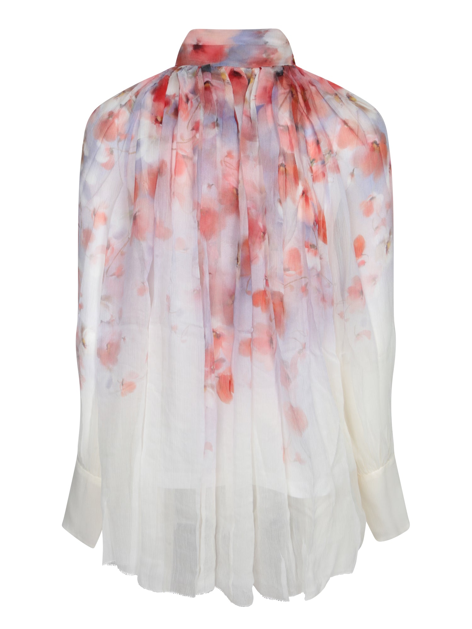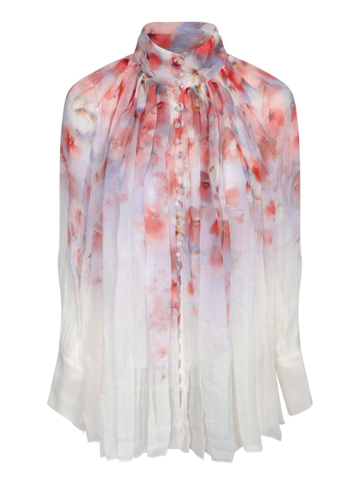 A captivating blend of romance and modernity, this Zimmermann blouse elevates any outfit with its airy fabric and vivid floral print, perfect for springtime occasions.