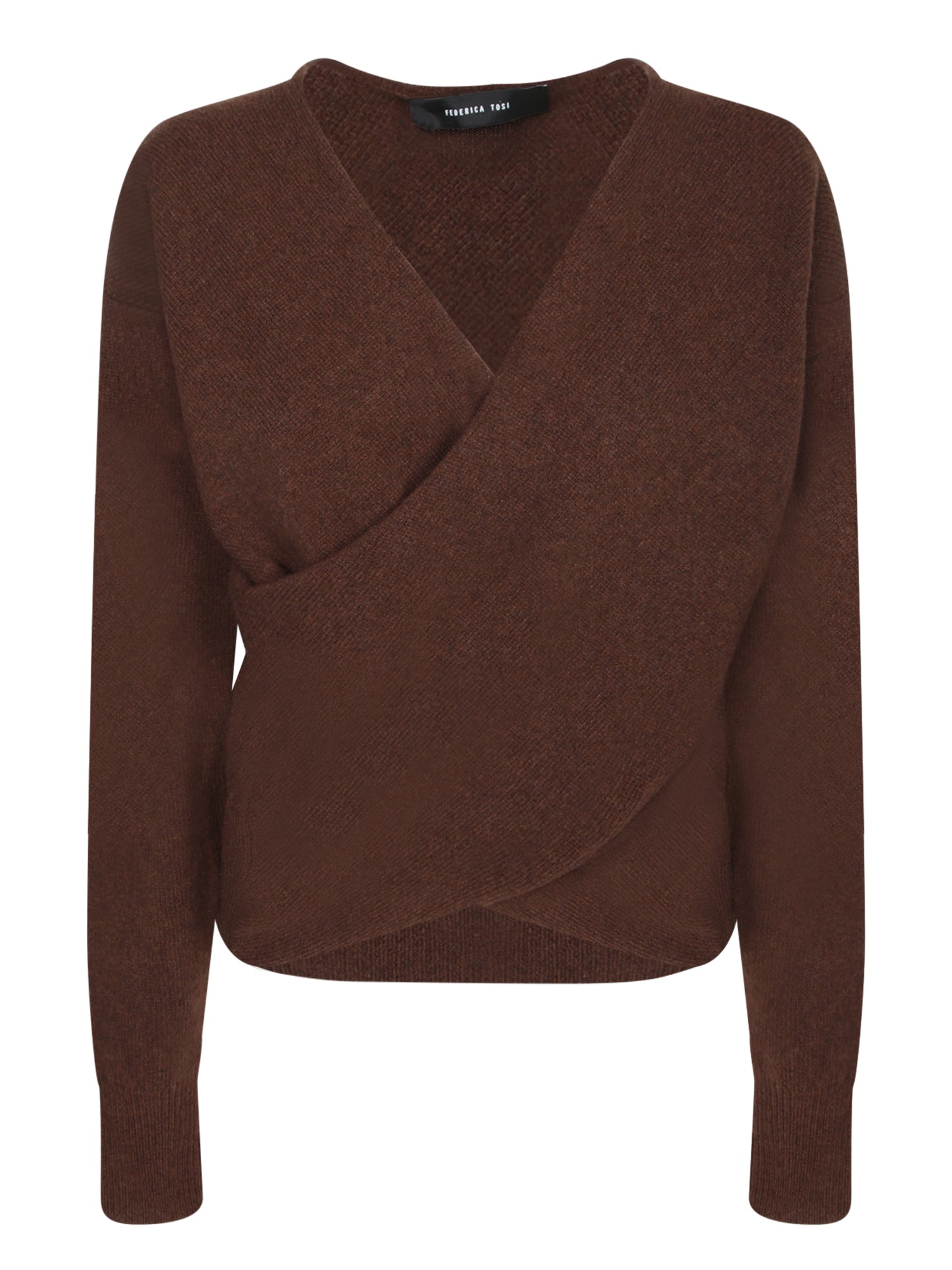 Dark Brown Crossed Wool Cashmere Sweater