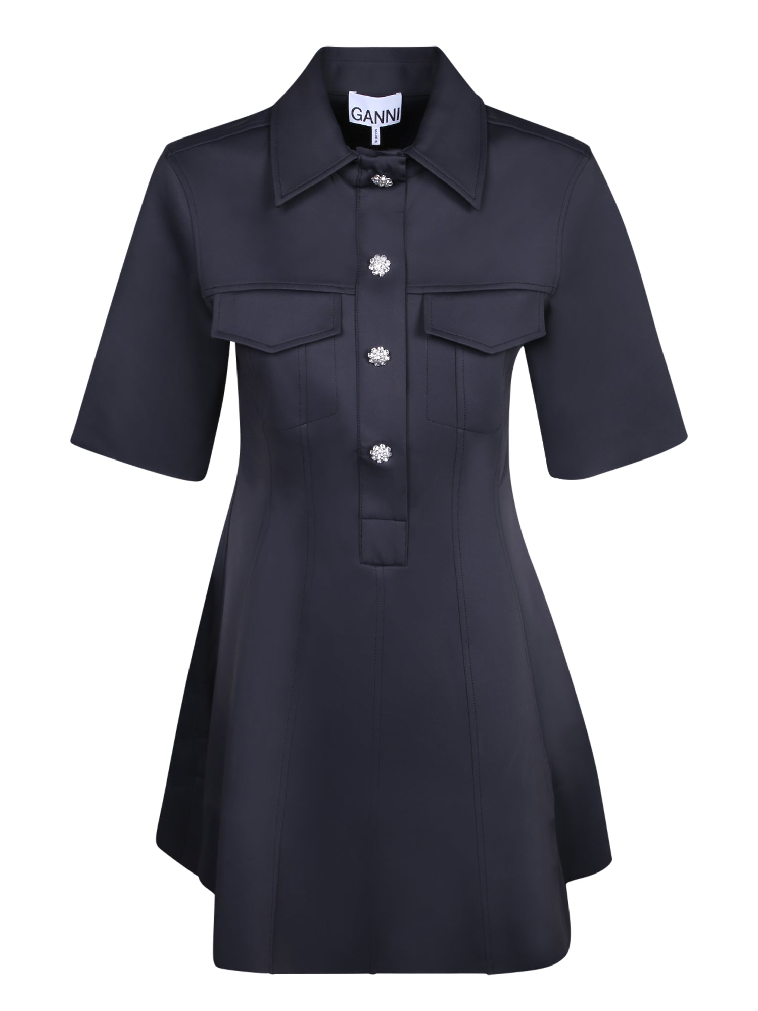 Short dress with short sleeves. Classic collar and front closure with jewel buttons.