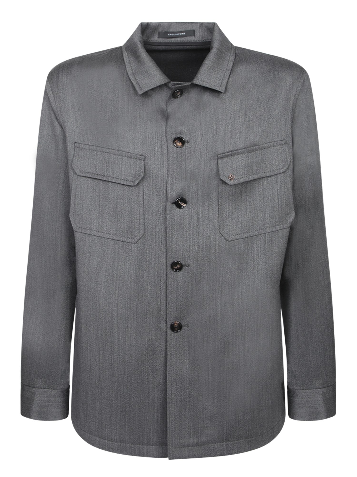 Wool overshirt with flap pockets. Front button closure. Classic collar.