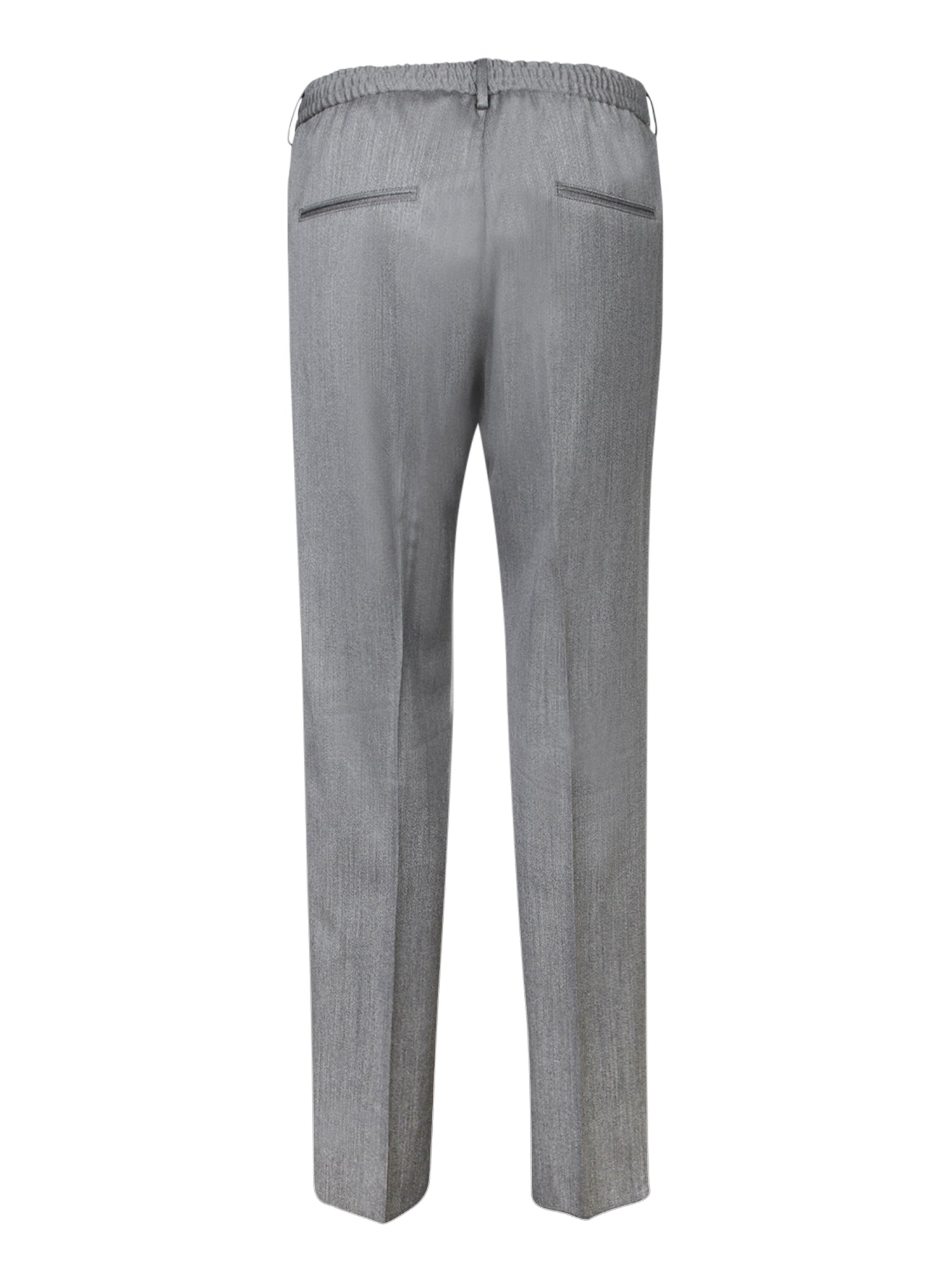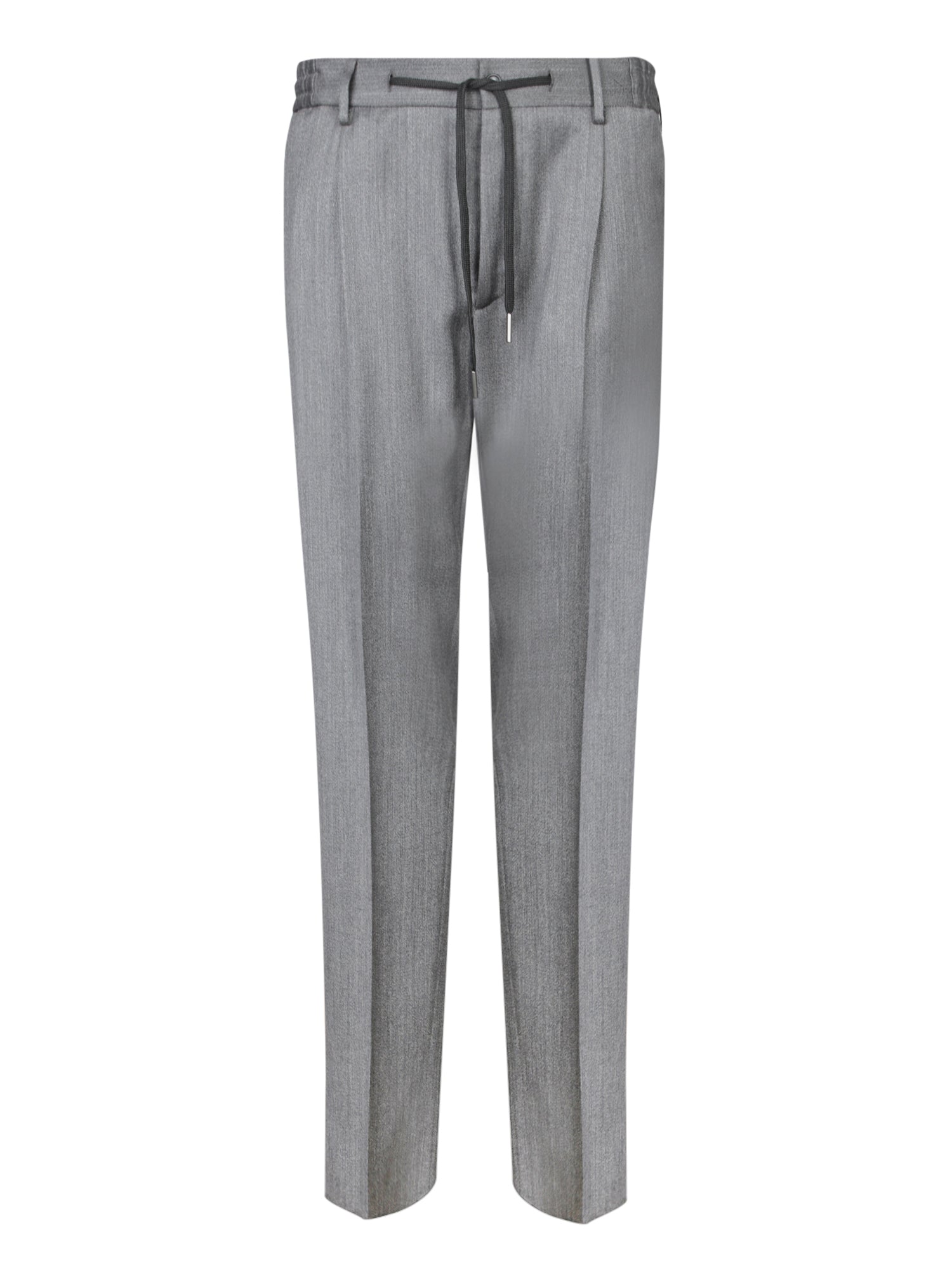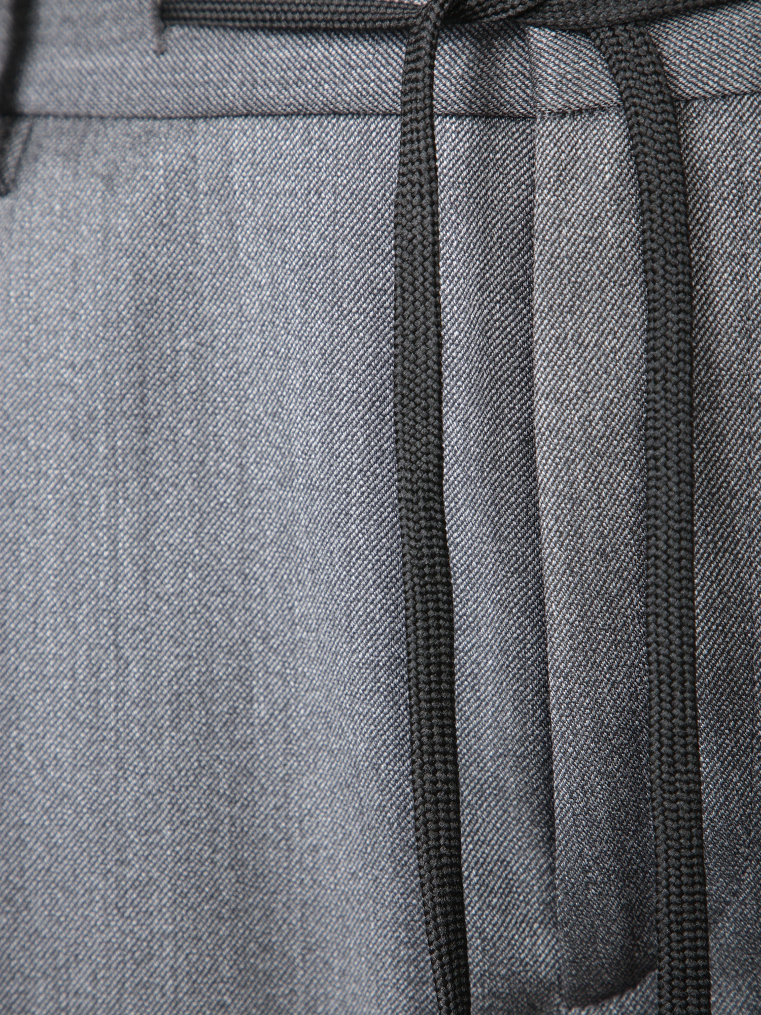 Wool trousers with drawstring. Slanted side pockets. Belt loops.