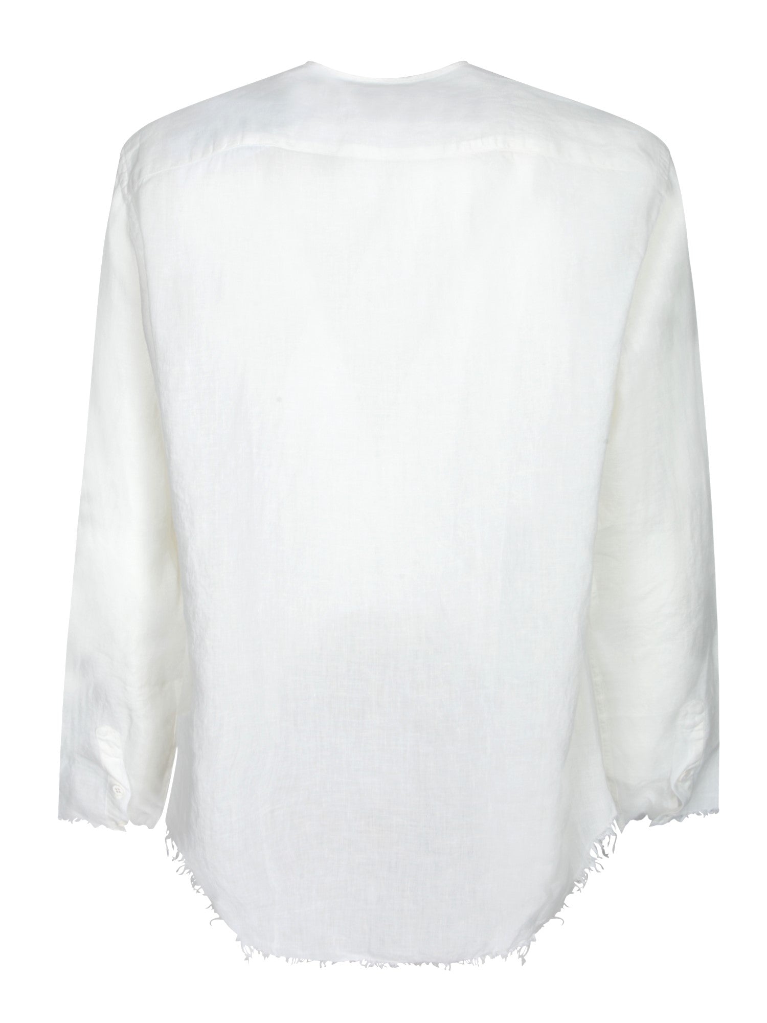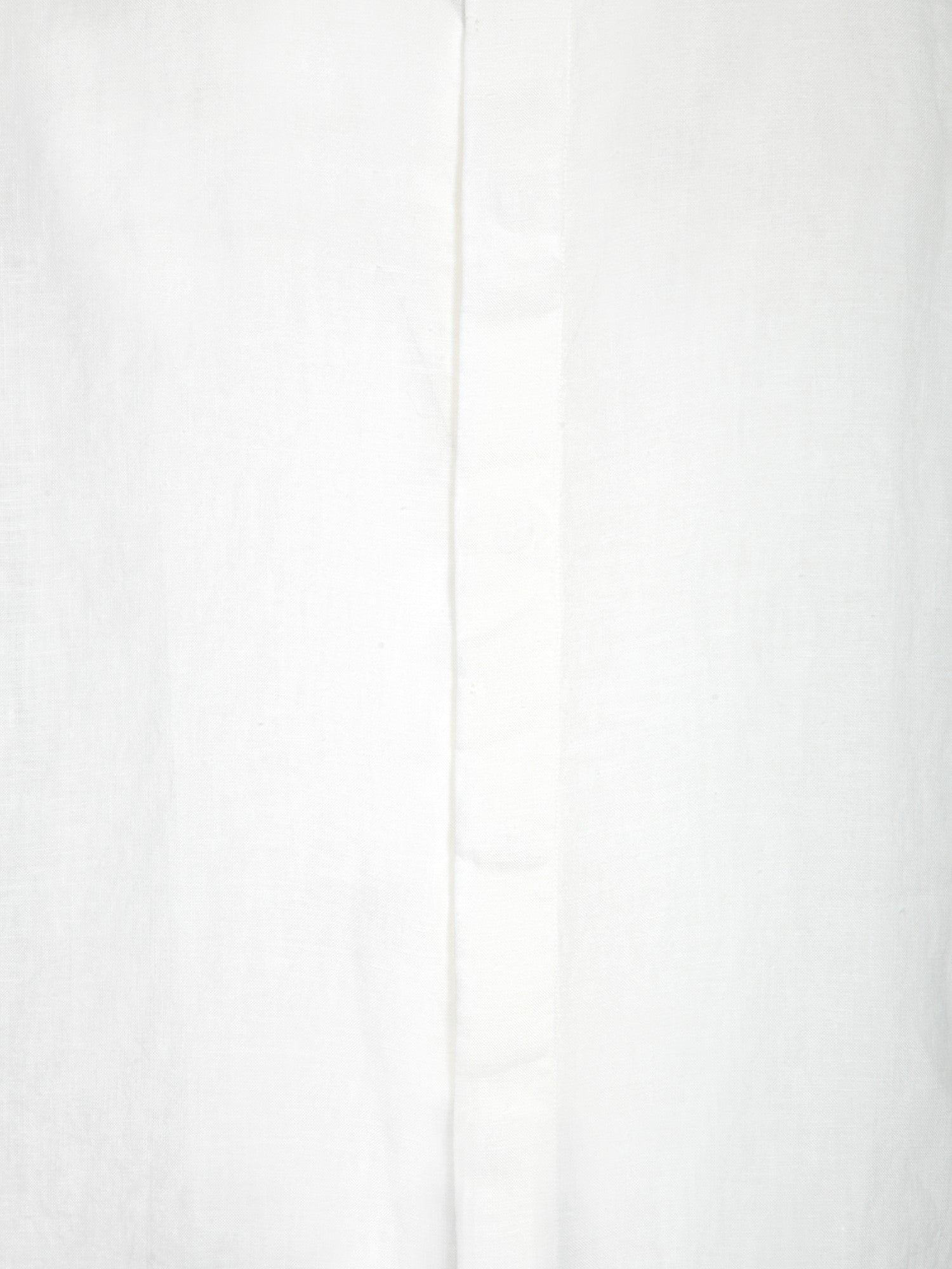 Long sleeve shirt in pure linen. Mandarin collar without visible buttons and raw hem.