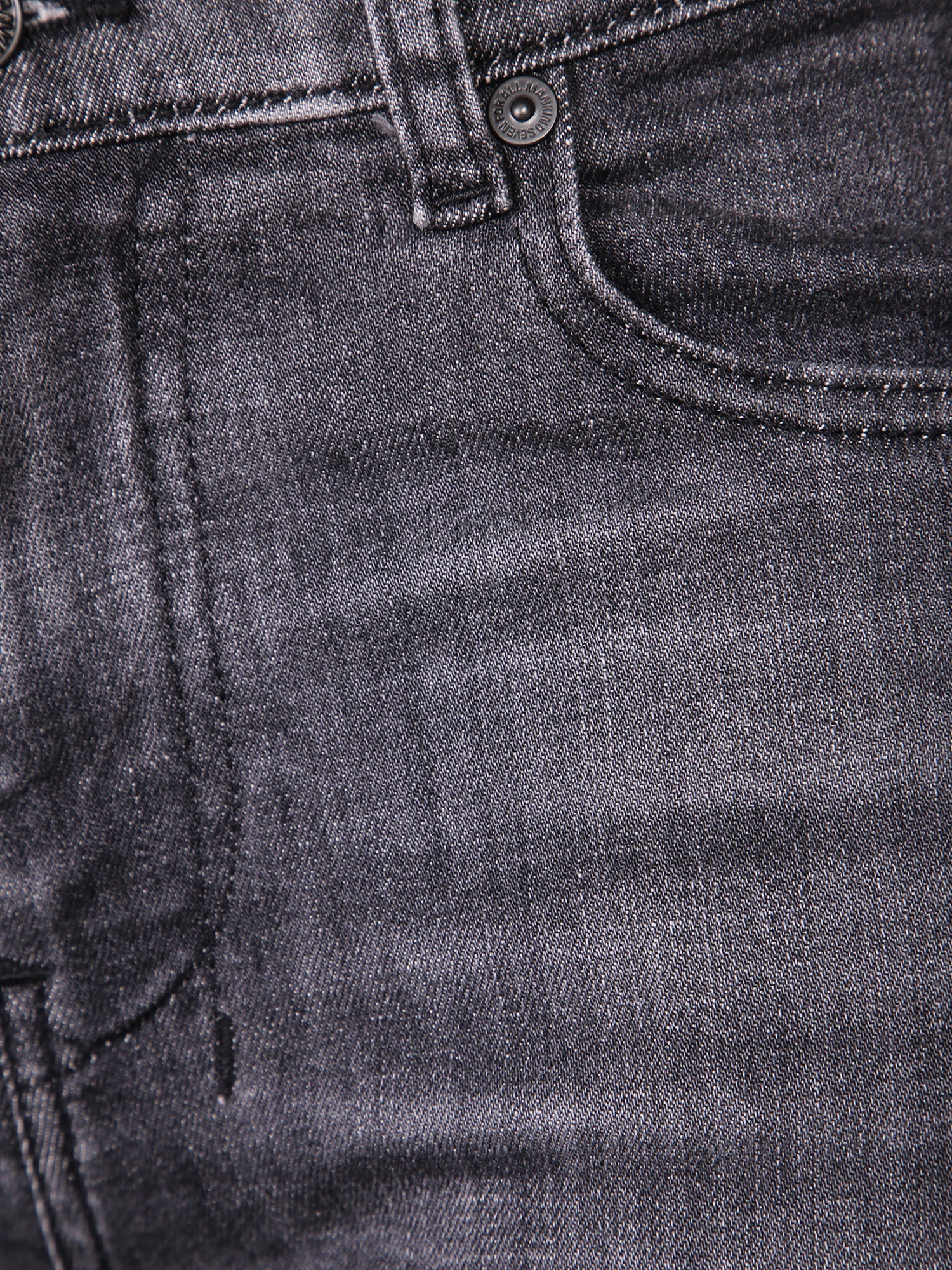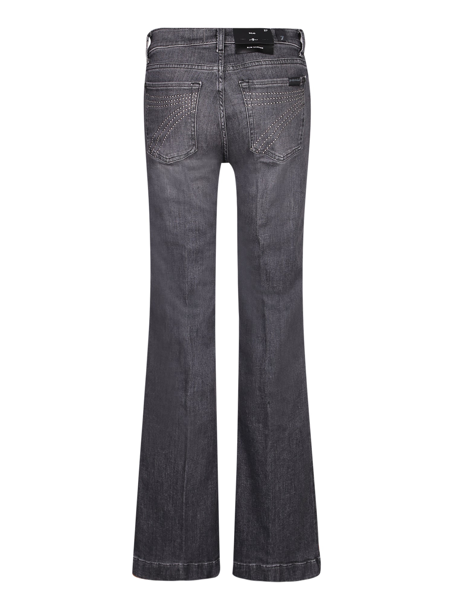 Flared fit. Faded finish and studded decorations. Mid-rise waist.