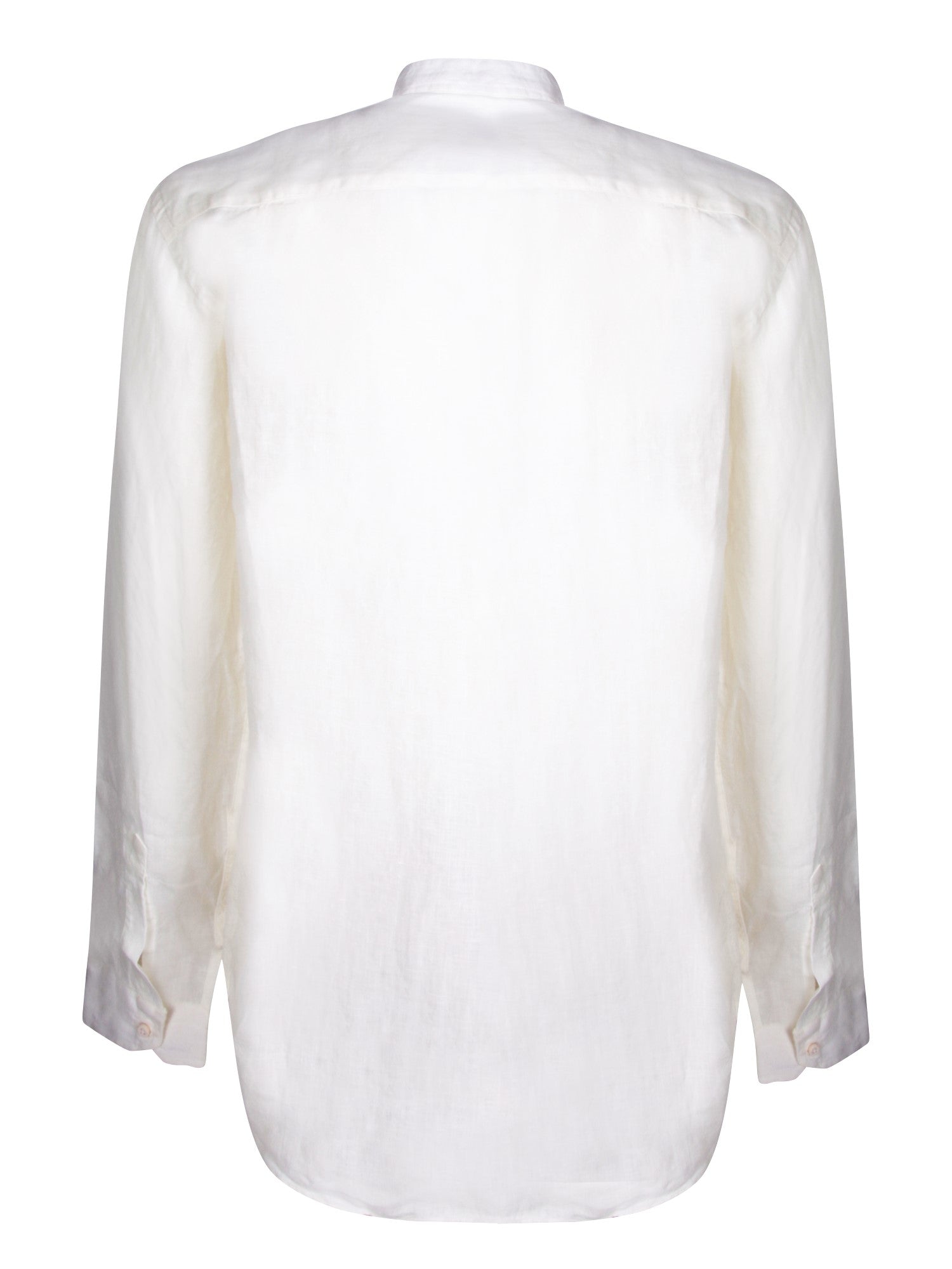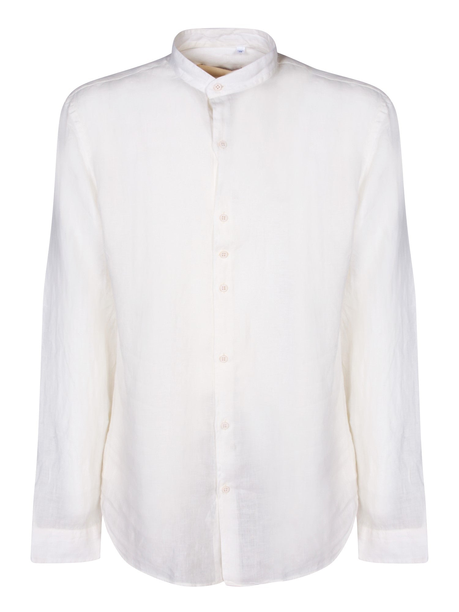 Lightweight cotton fabric shirt, classic collar, front button closure, long sleeves with buttoned cuffs.