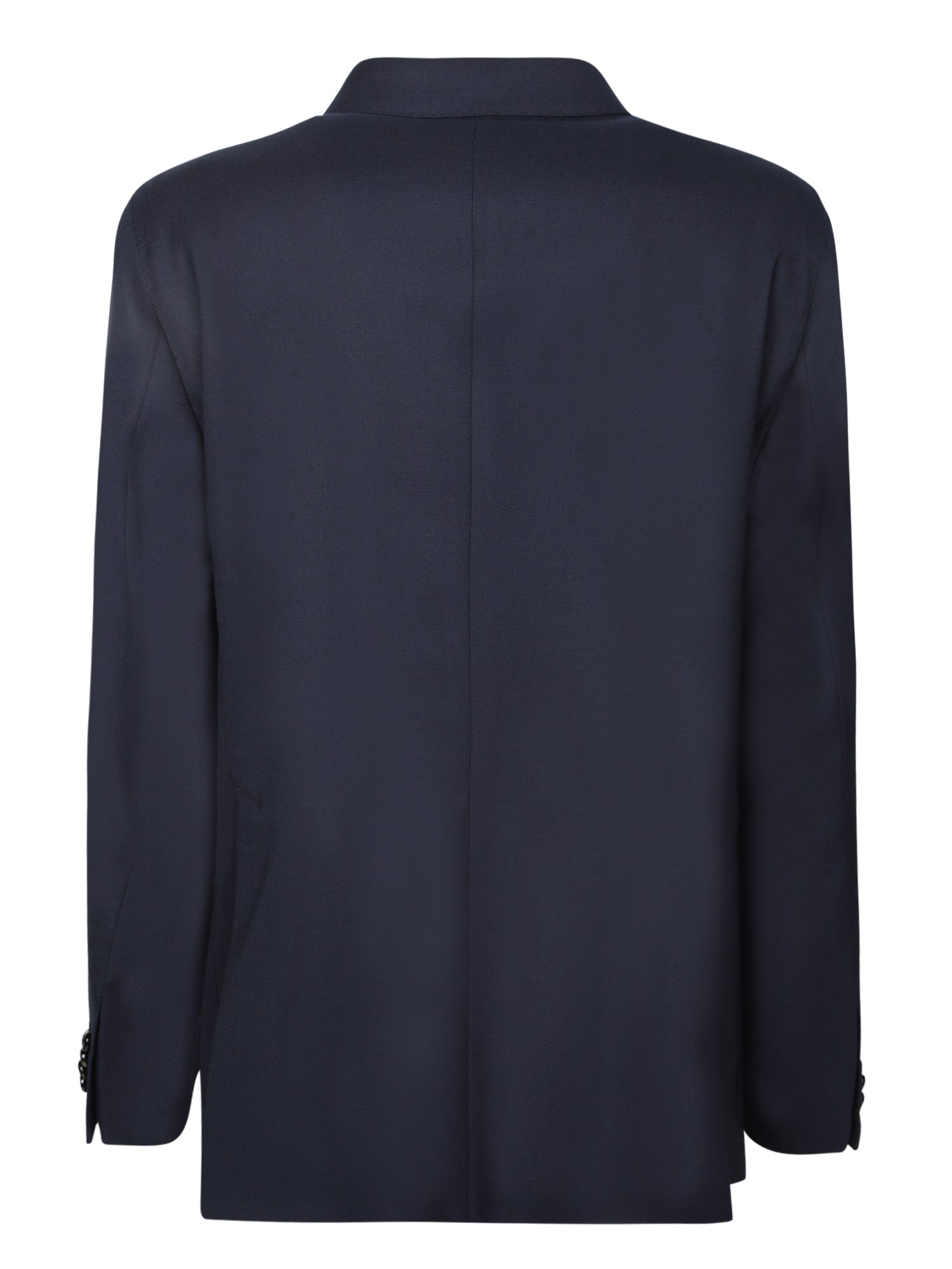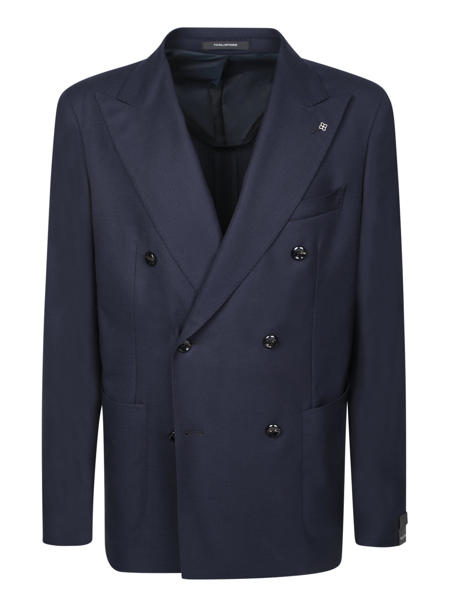 A refined take on classic Italian tailoring, this blue hopsack Tagliatore jacket is marked by a sharply tailored silhouette, meticulous sartorial details, and distinctive buttons.