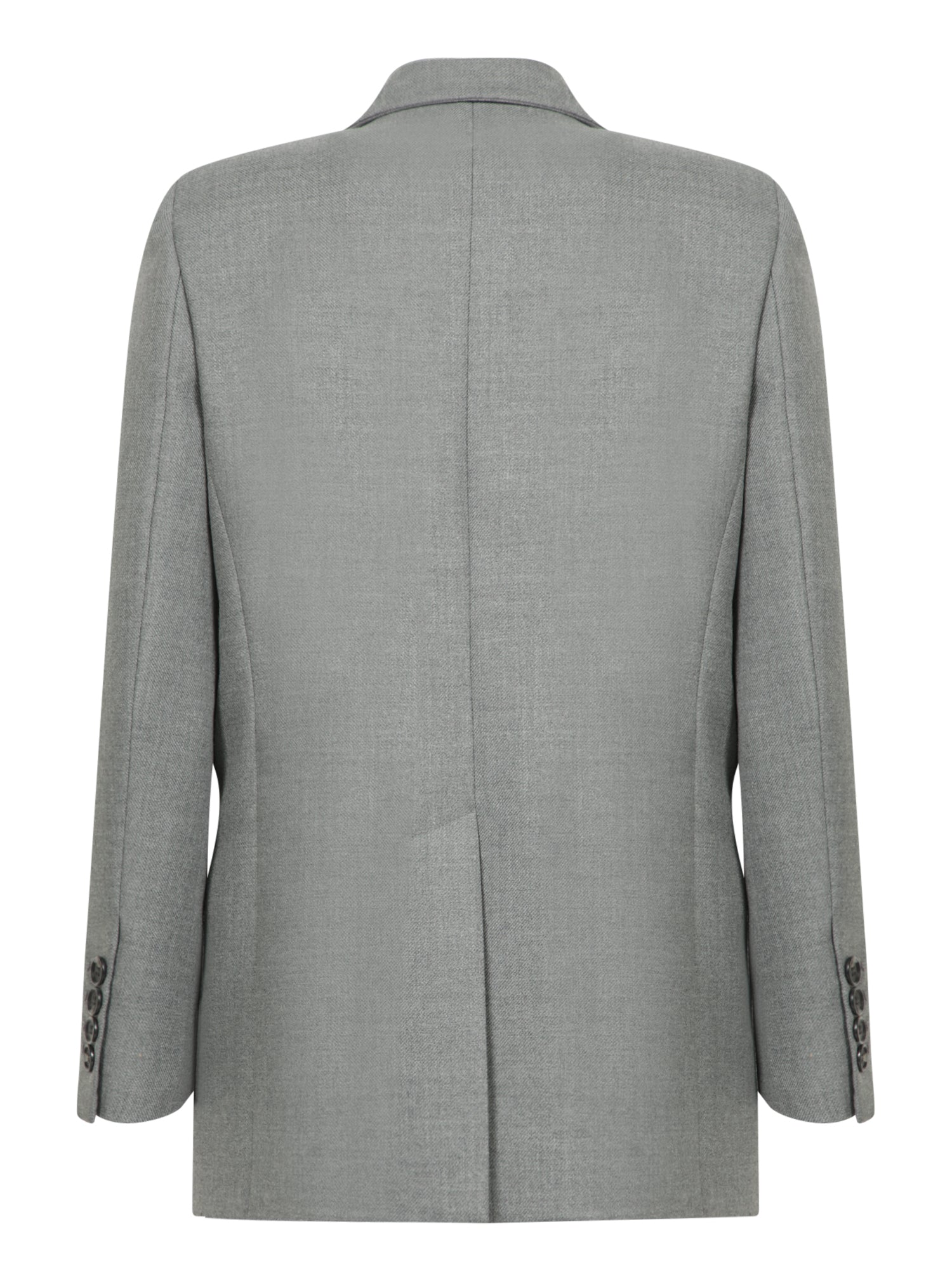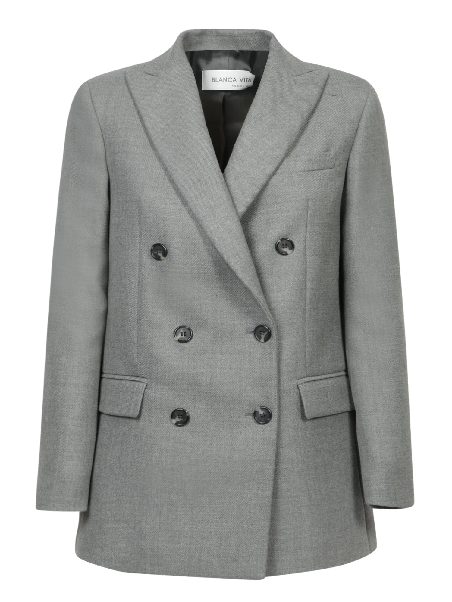 This elegant grey wool blend jacket from Blanca Vita features a classic silhouette with a modern twist, perfect for a sophisticated look both in and out of the office.