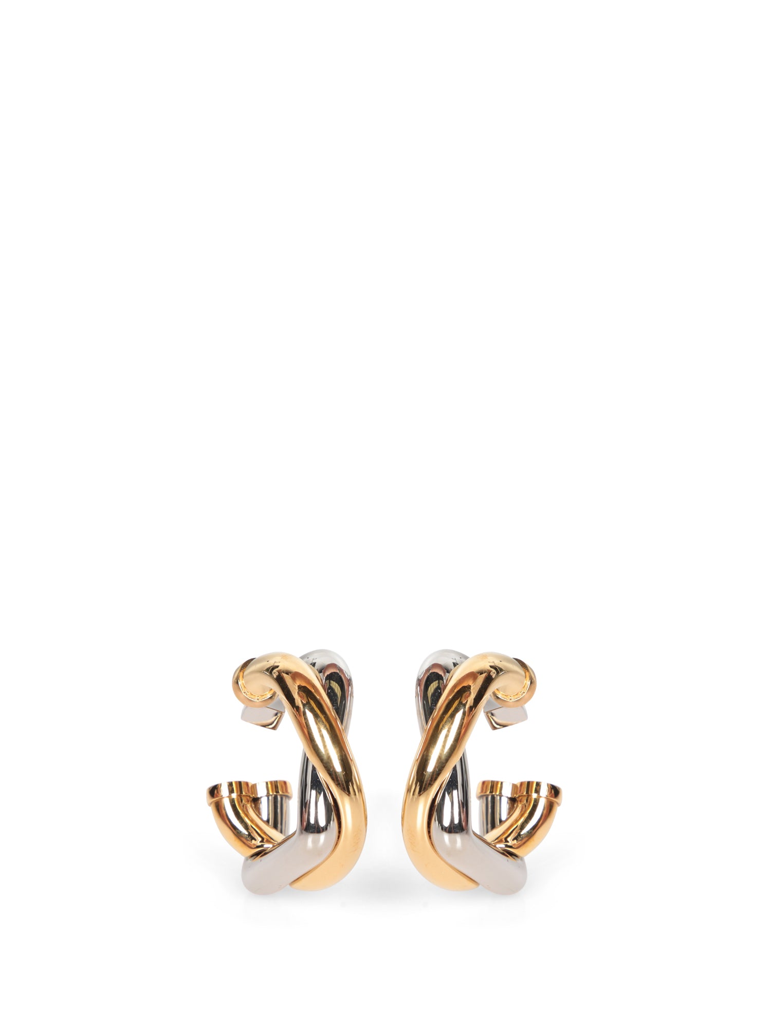 Luxurious earrings crafted in gold and silver. Modern and enveloping design.