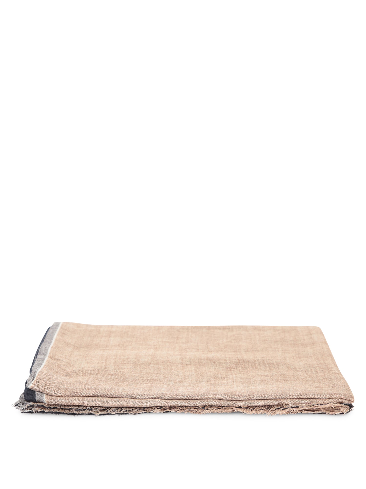 Mixed linen fabric scarf. Contrast trim on the edges. Generous dimensions for versatile styling.