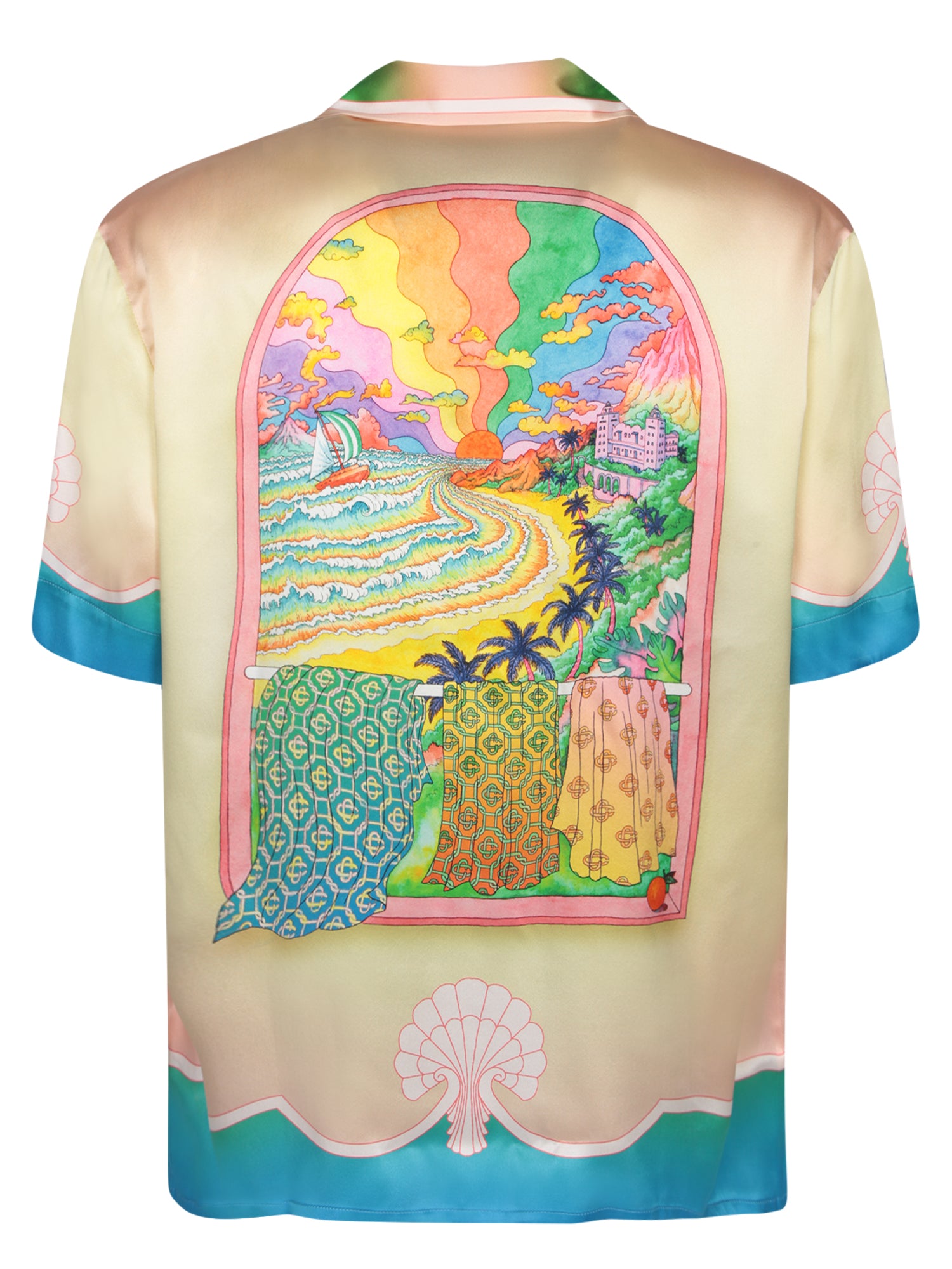 This Casablanca shirt, model Dreams Aran, features a bold multicolor design with marine-inspired graphic details. Crafted from lightweight fabric, it is perfect for a distinctive summer look.