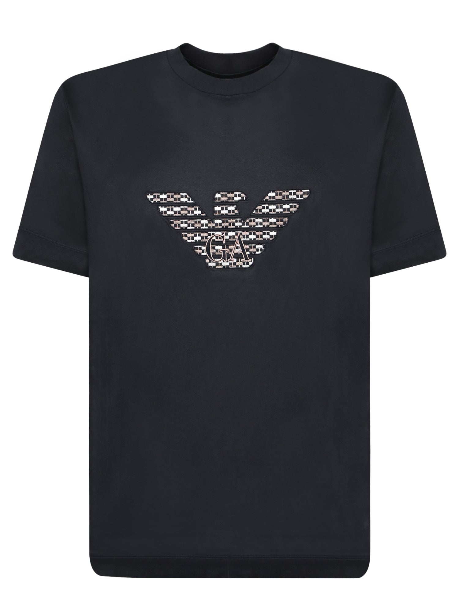 Short sleeves. Crew neck. EMPORIO ARMANI rhinestone eagle logo.