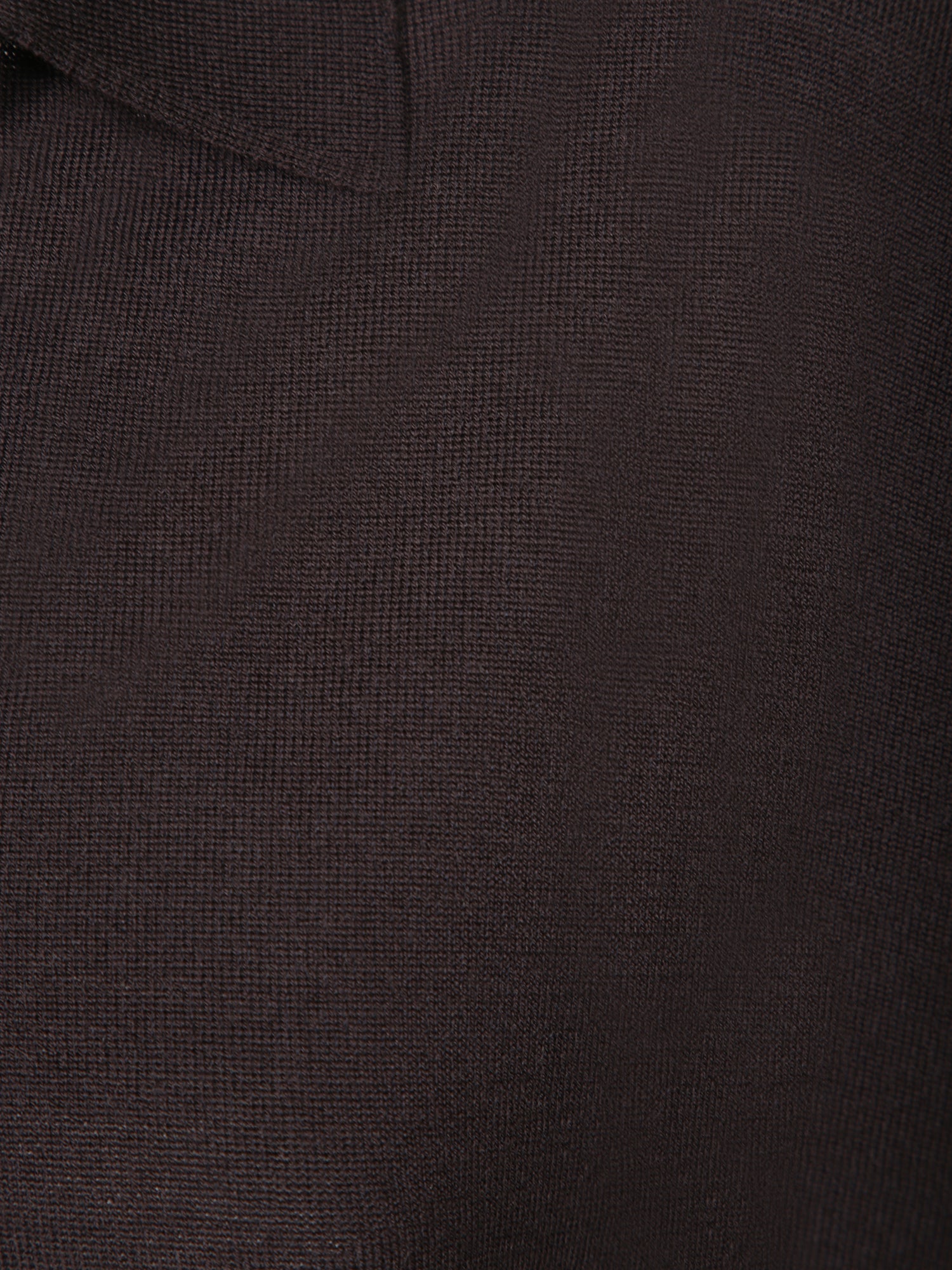 Long-sleeve sweater in earth tone. Polo collar. Ribbed finish on cuffs and hem.