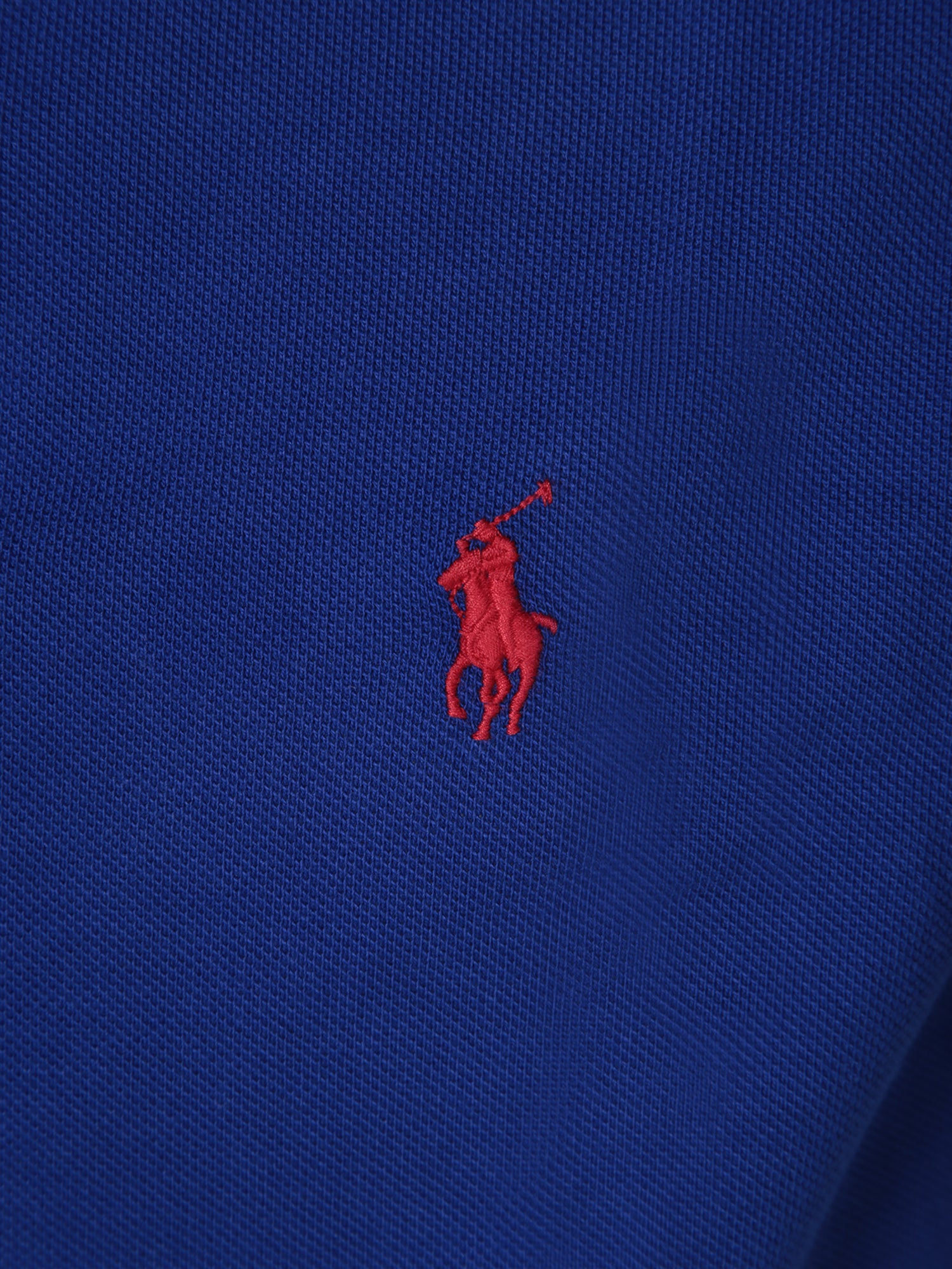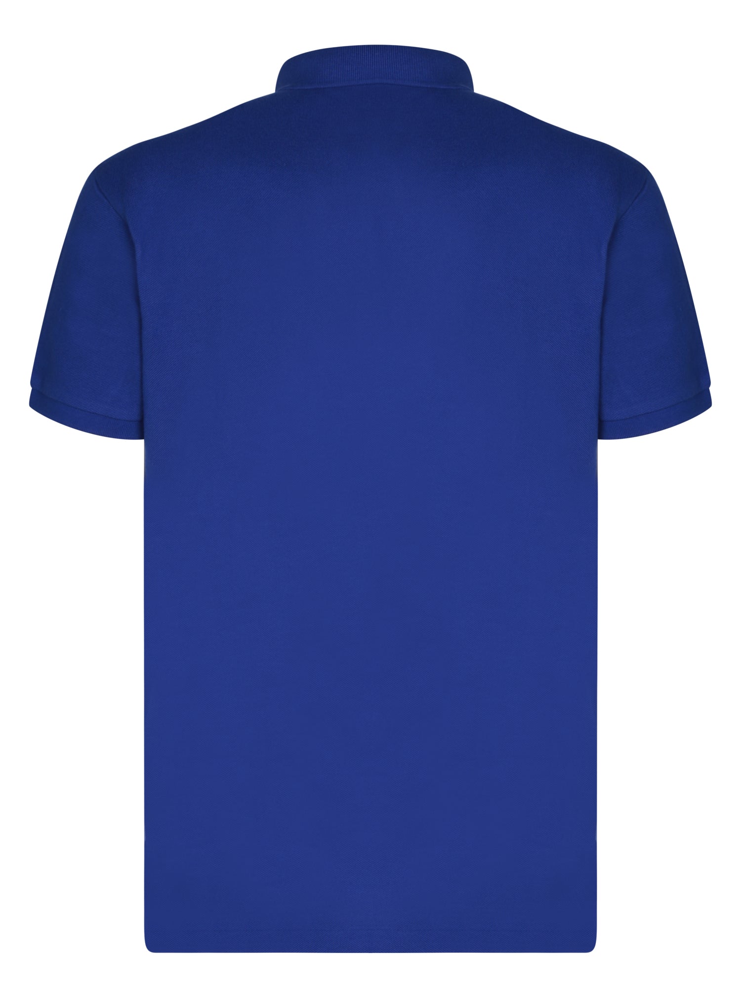 Short sleeves, three-button placket, shirt collar, embroidered logo on the chest.