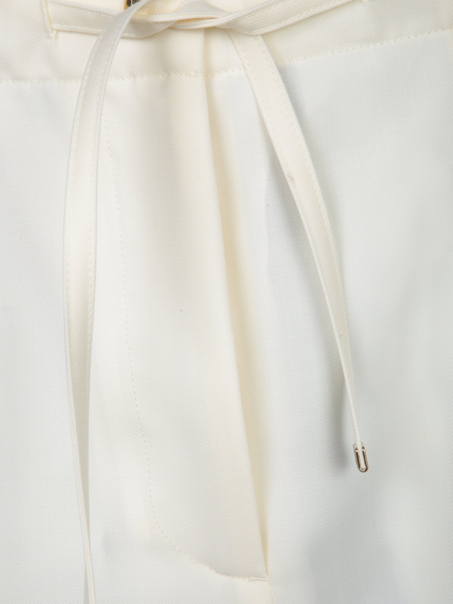 High-waisted trousers with coordinated belt, side seam pockets, straight cut.