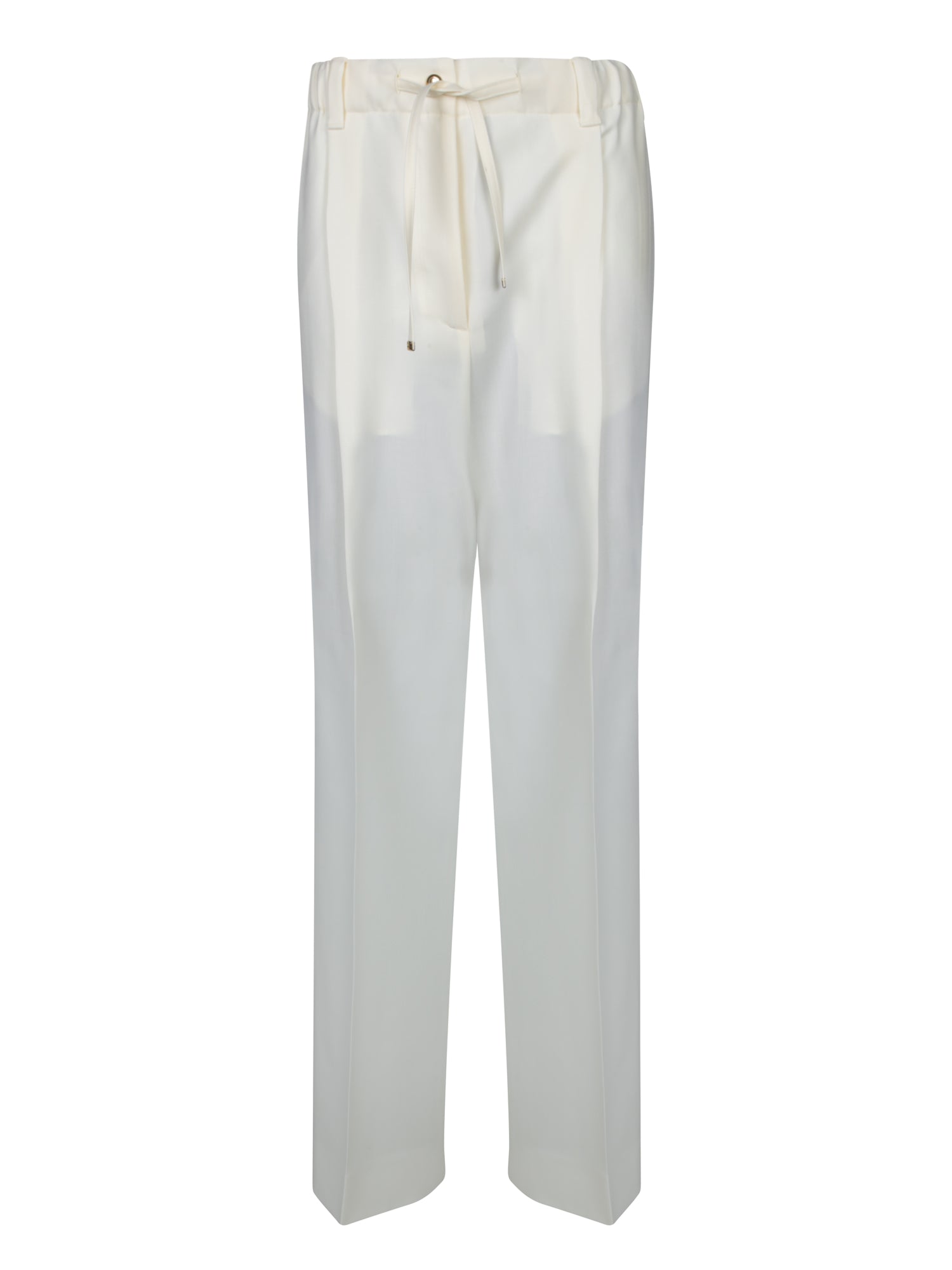 High-waisted trousers with coordinated belt, side seam pockets, straight cut.