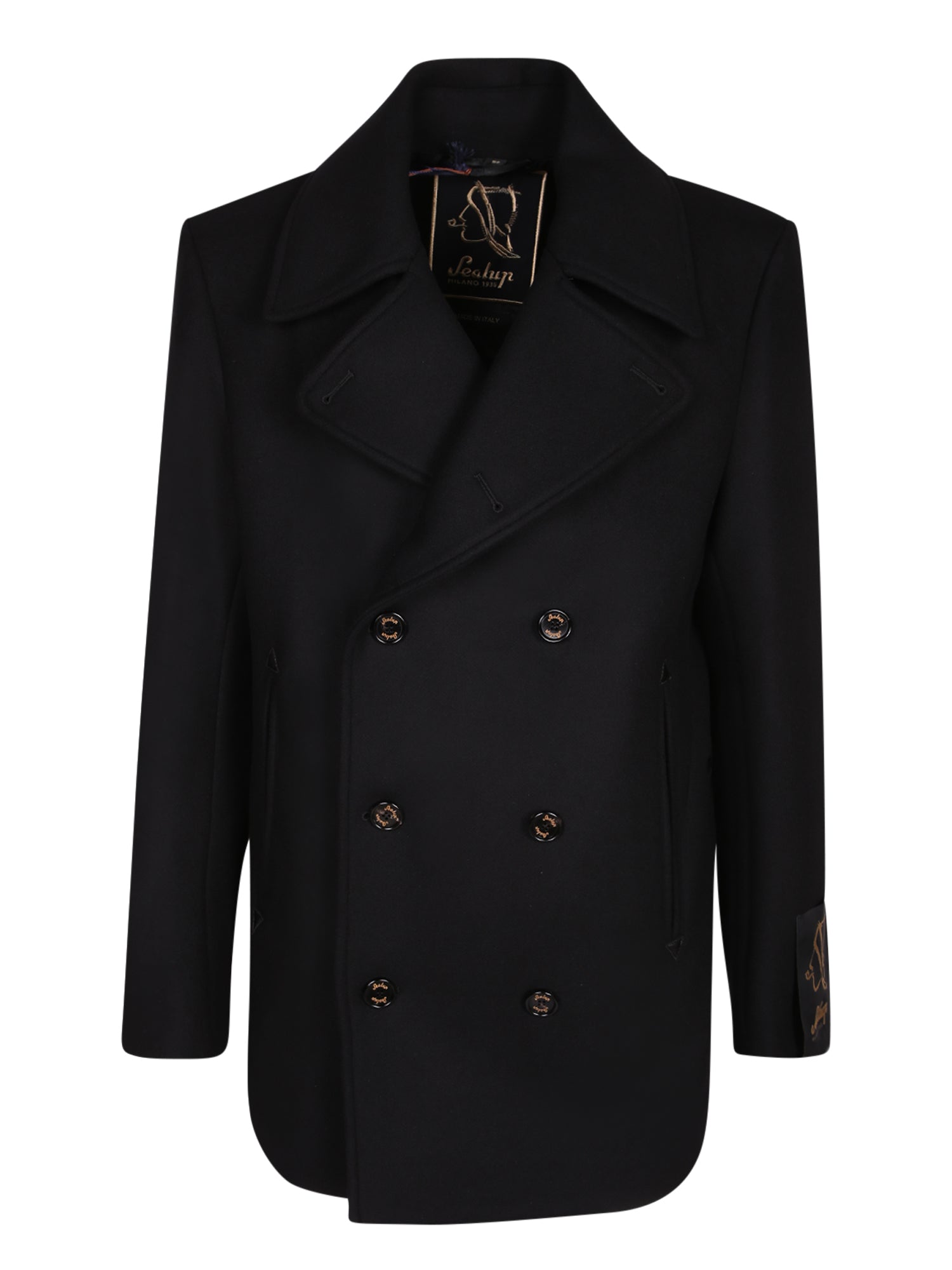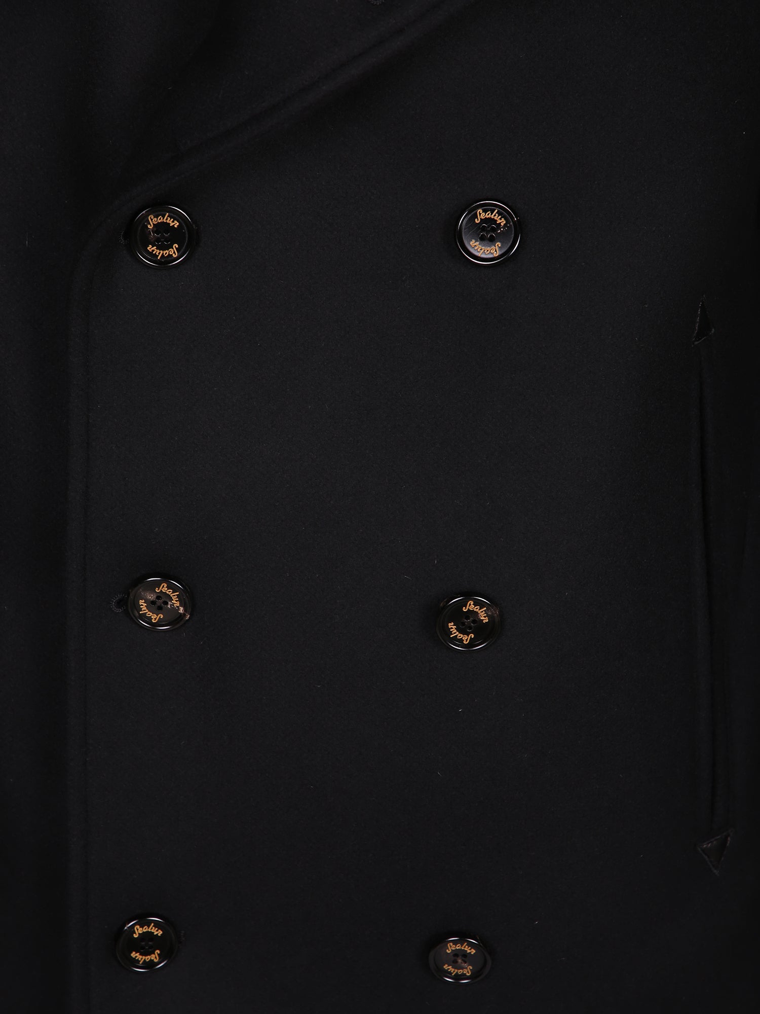 Double-breasted button closure. Welt front pockets. Buttoned cuffs.