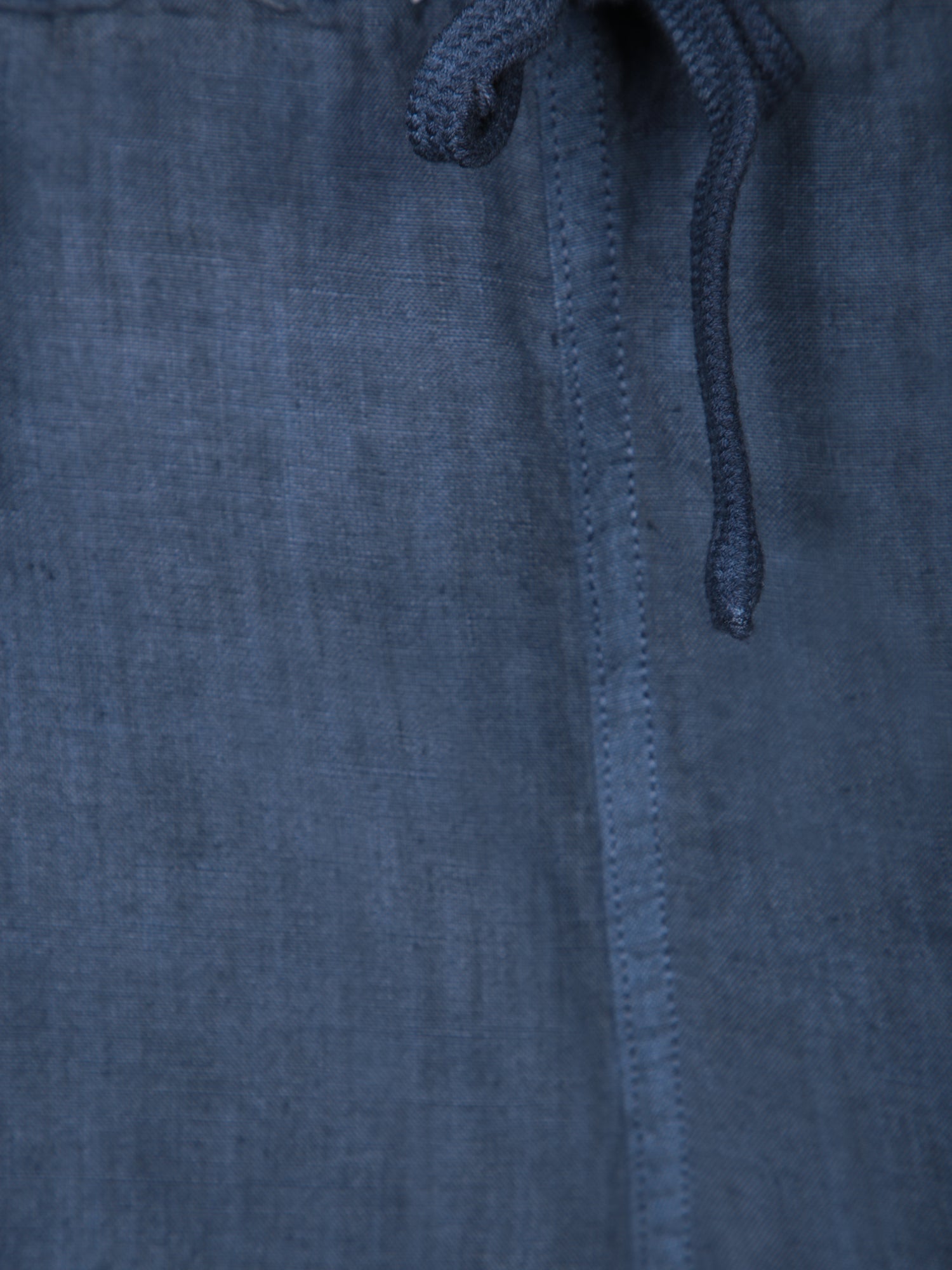 Elastic waistband with drawstring. Linen fabric. Two side pockets.