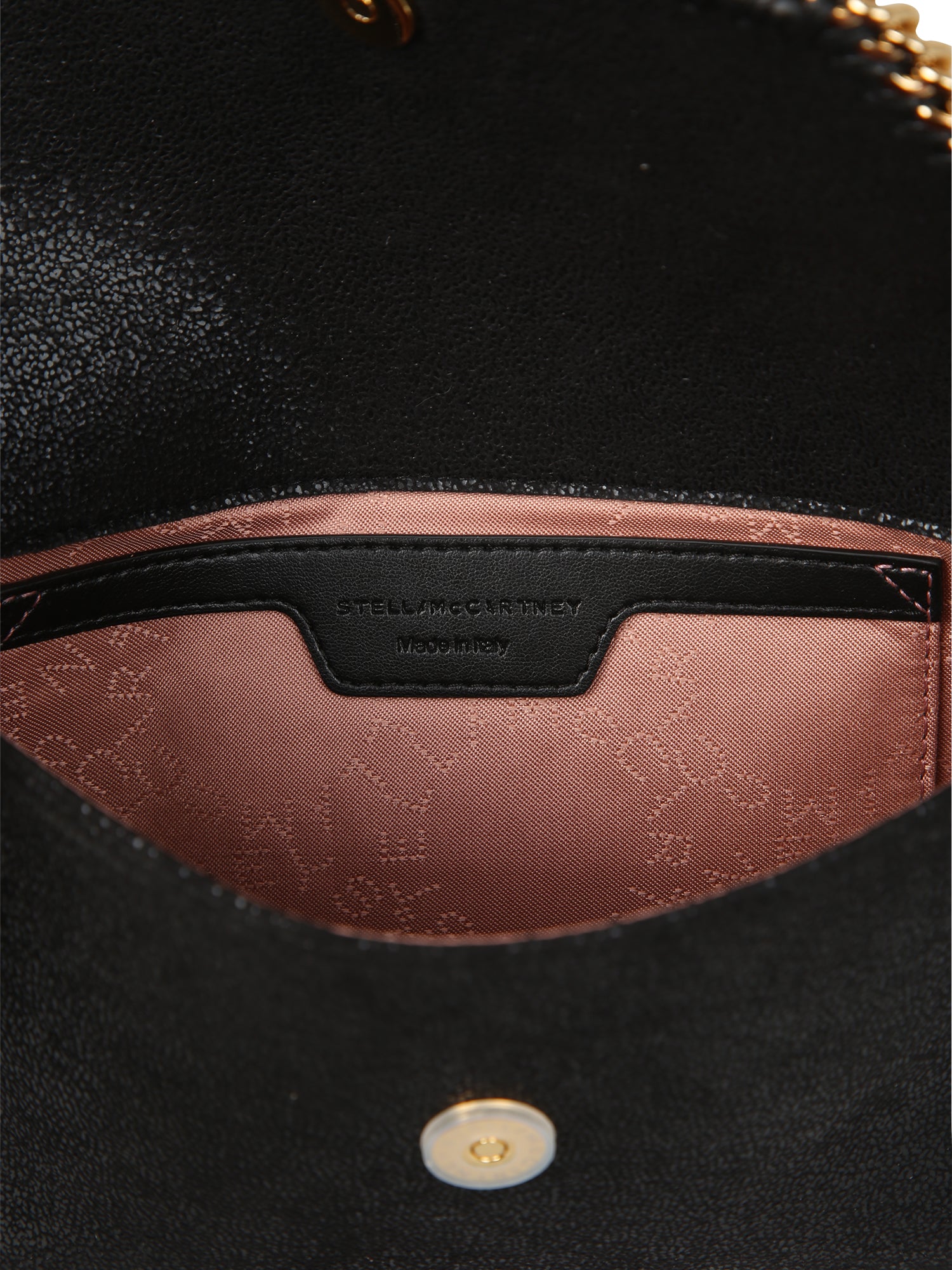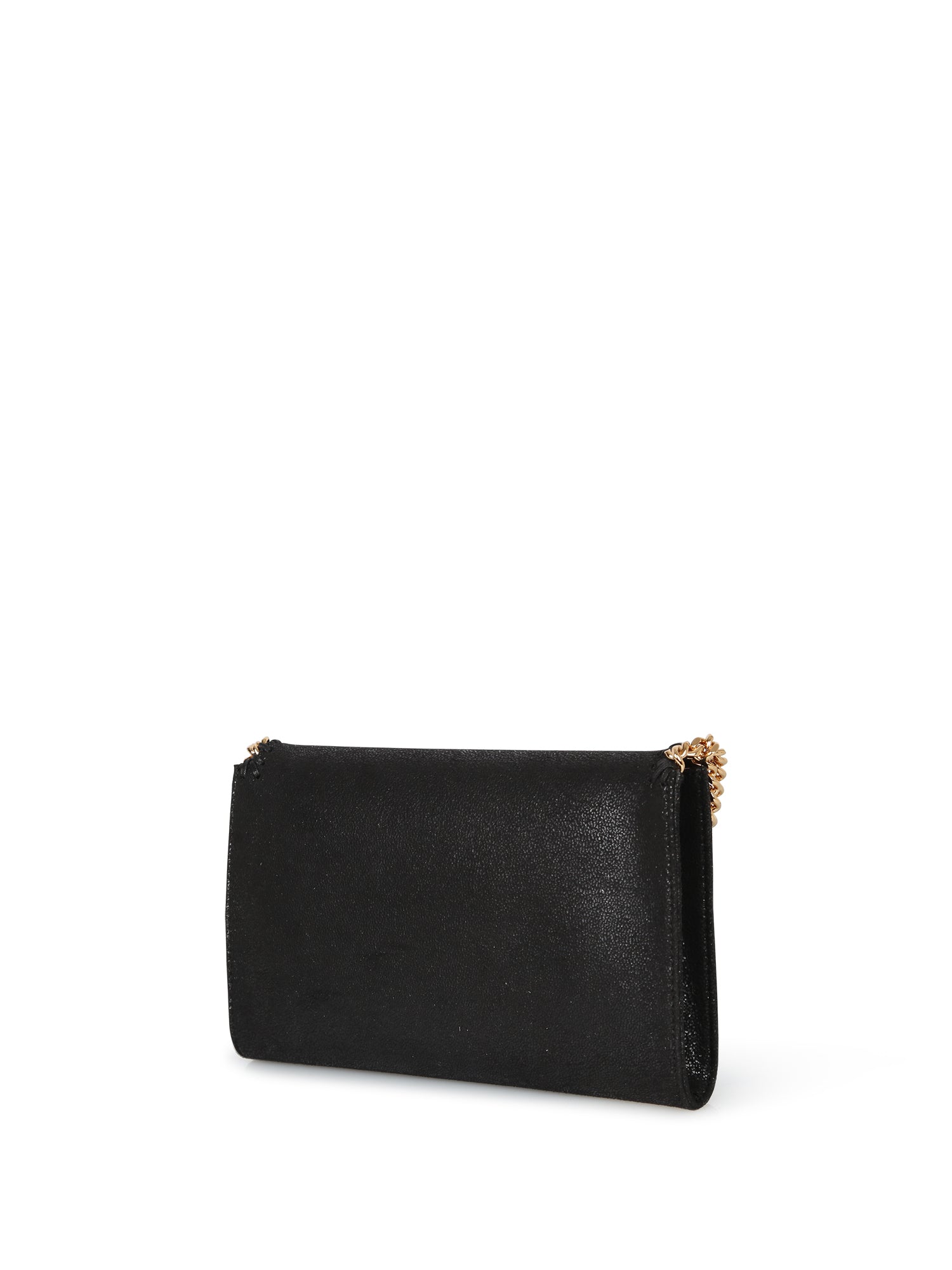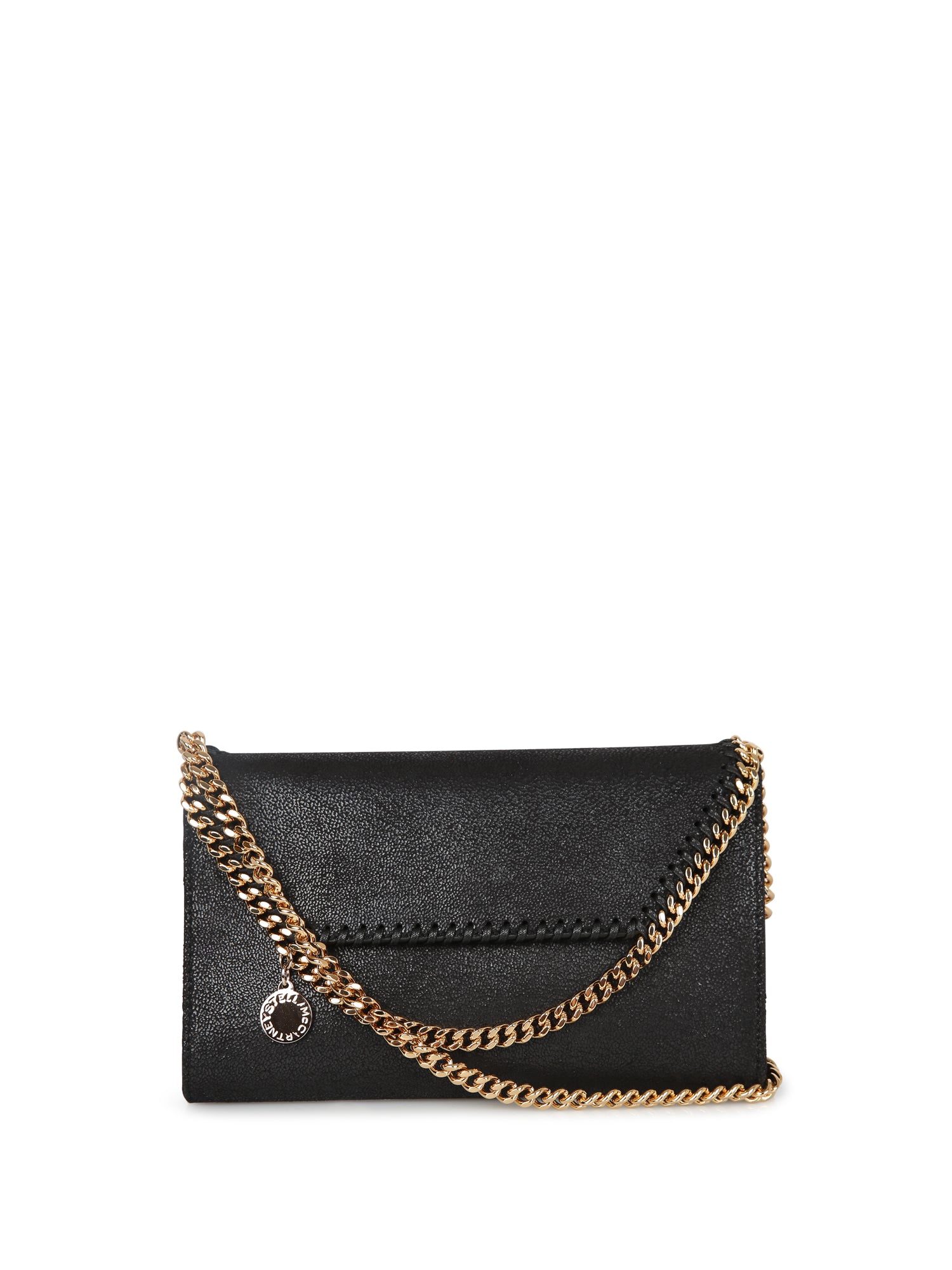 Chain shoulder strap. Engraved logo medallion. Front foldover fastening. Size: 14 cm x 22 cm x 2.5 cm