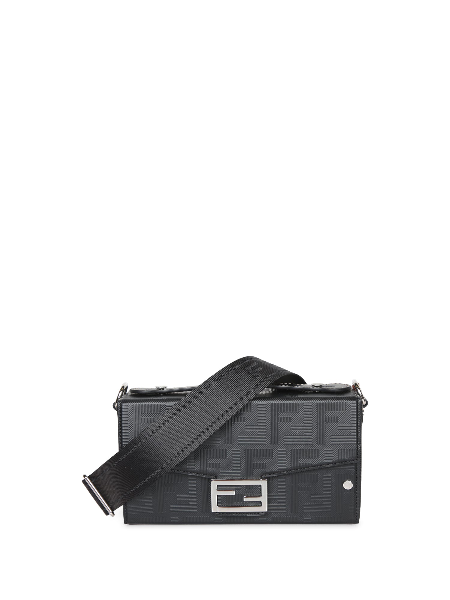 Shoulder bag in jacquard fabric with FF monogram pattern. Front snap fastening and silver-tone metal details.