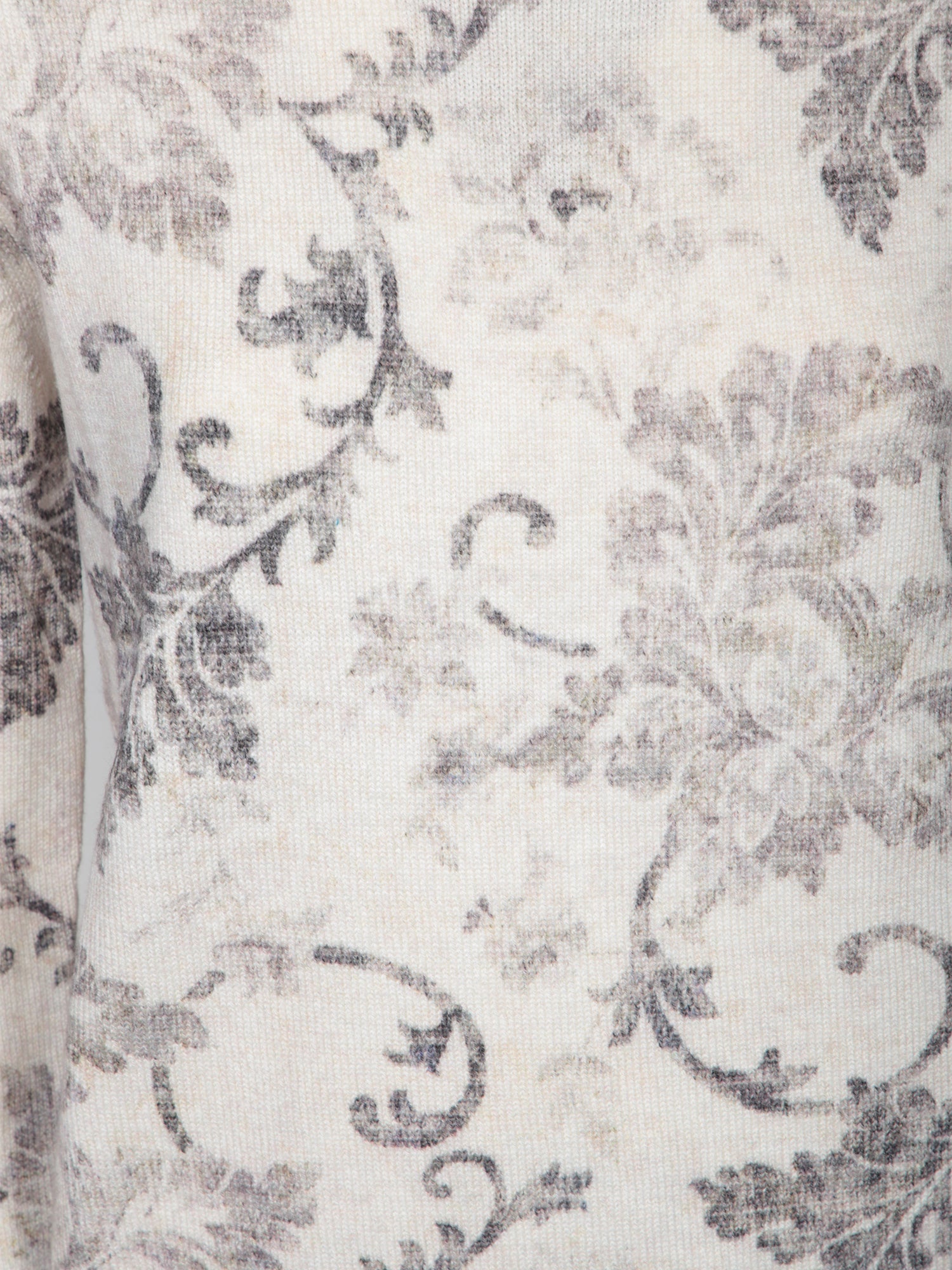 Long sleeve sweater. Crew neck. Floral pattern on a grey background.
