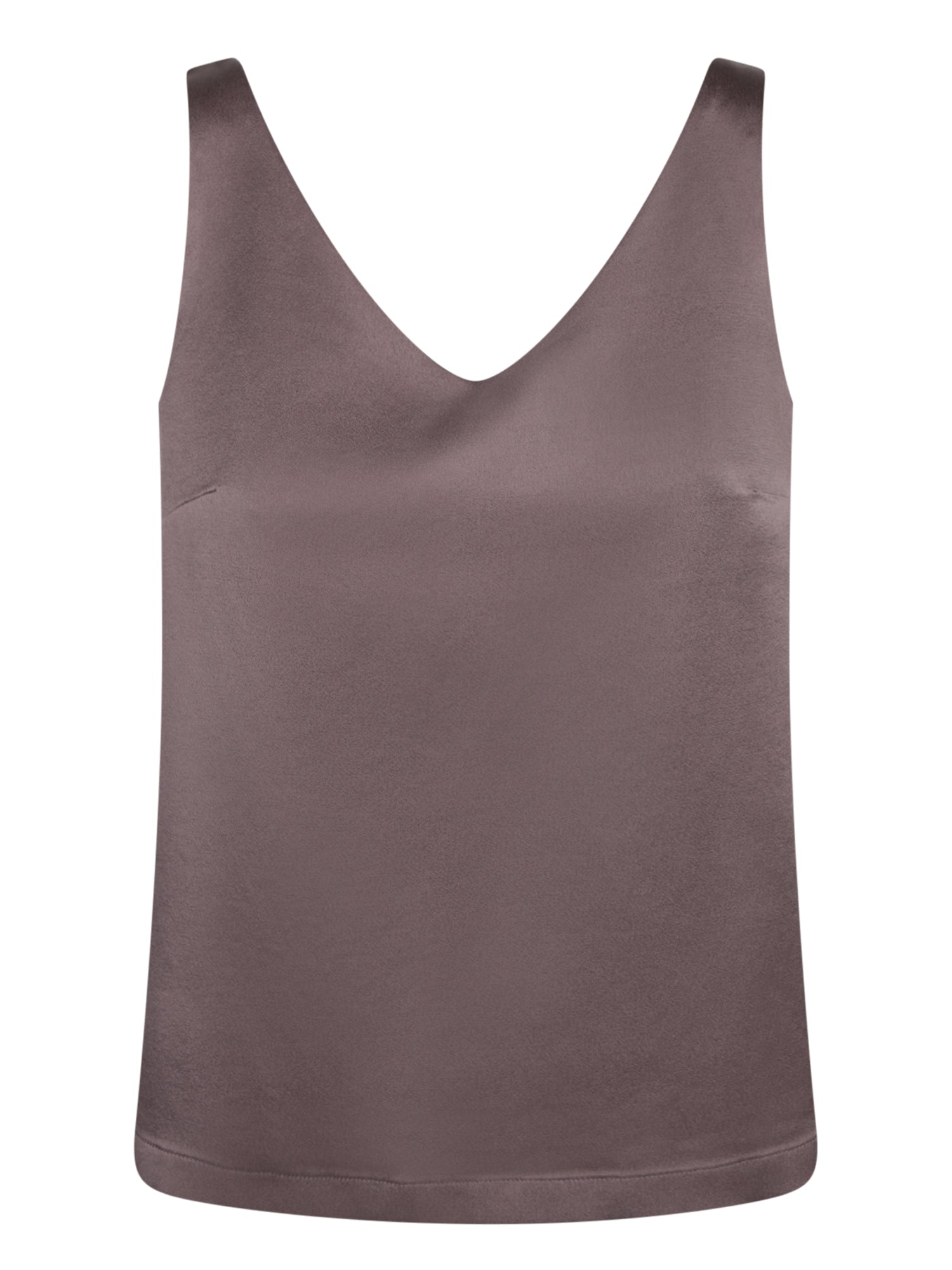 Satin silk top. Wide straps. Smooth front panel.