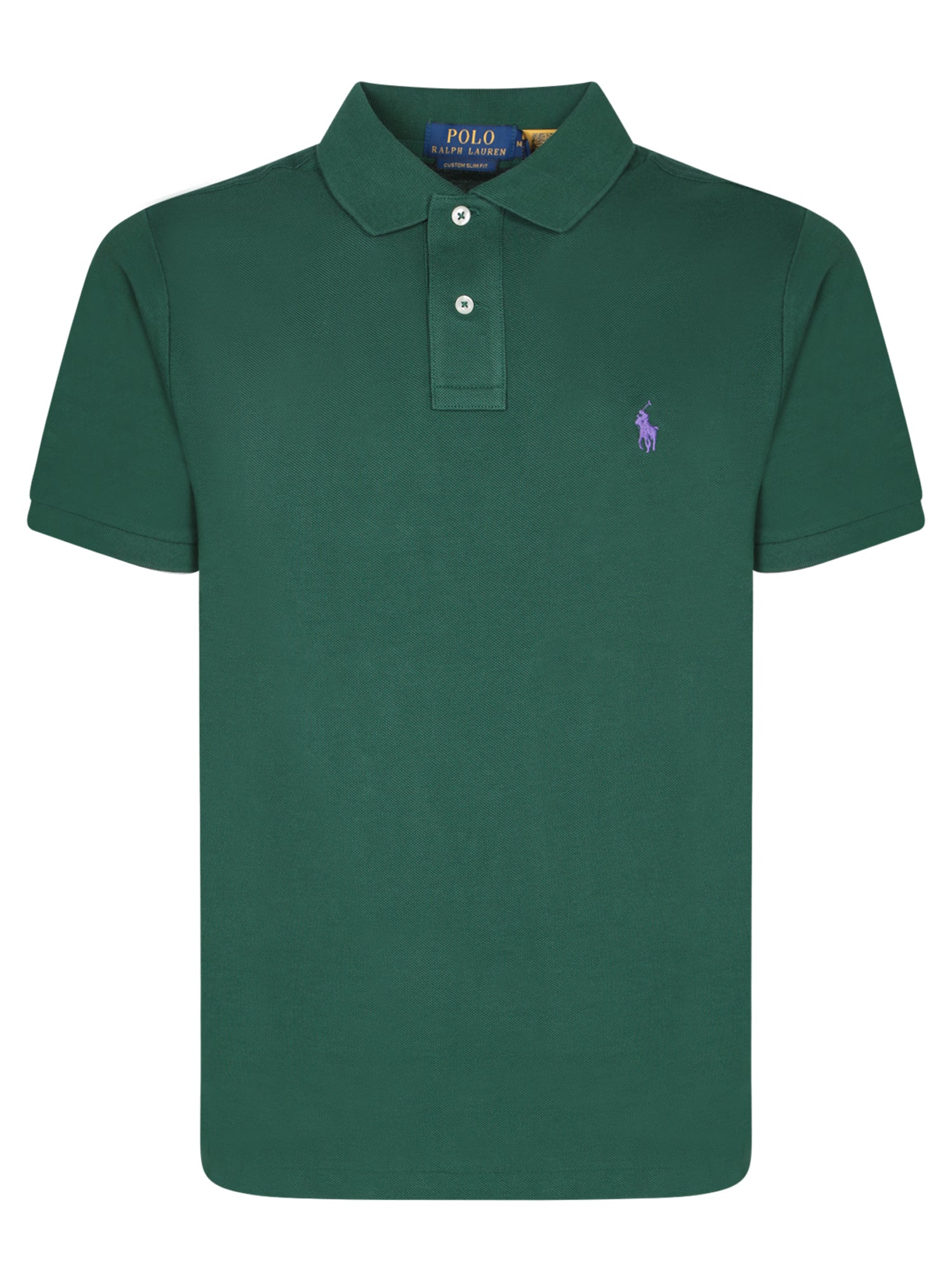 Short sleeves, two-button placket, embroidered logo on the chest.