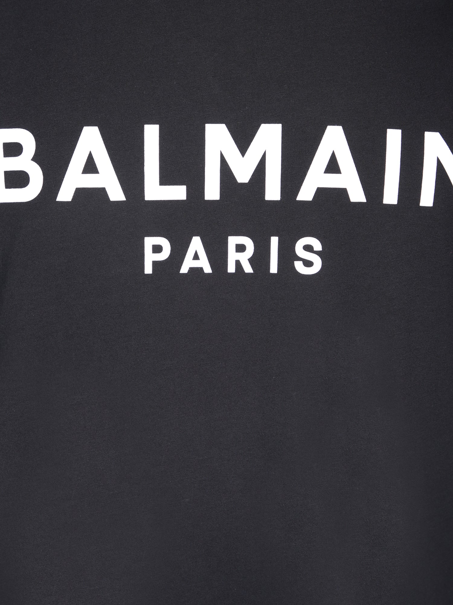 Front logo black t-shirt by Balmain. Made entirely of eco-friendly cotton, this garment has a minimalist design without sacrificing a touch of class
