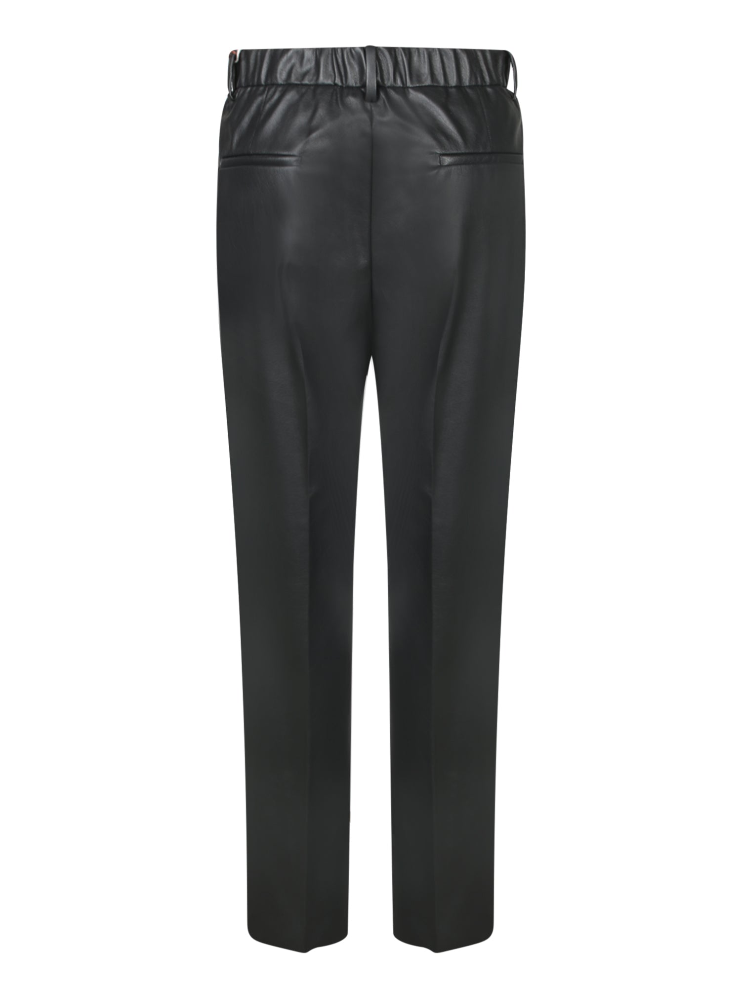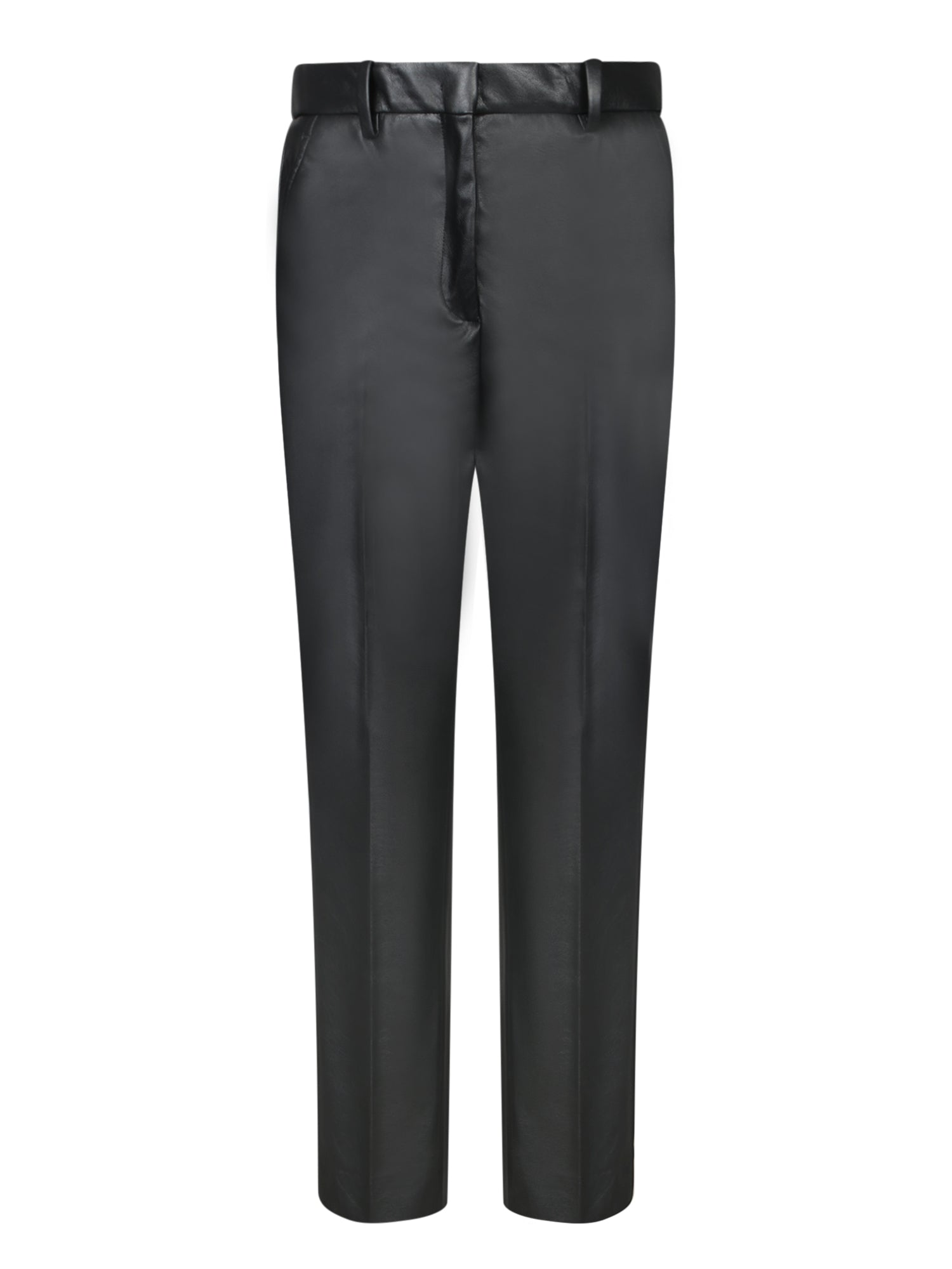 High-waisted trousers with matching belt. Soft and comfortable faux leather fabric. Minimalist design with side pockets.