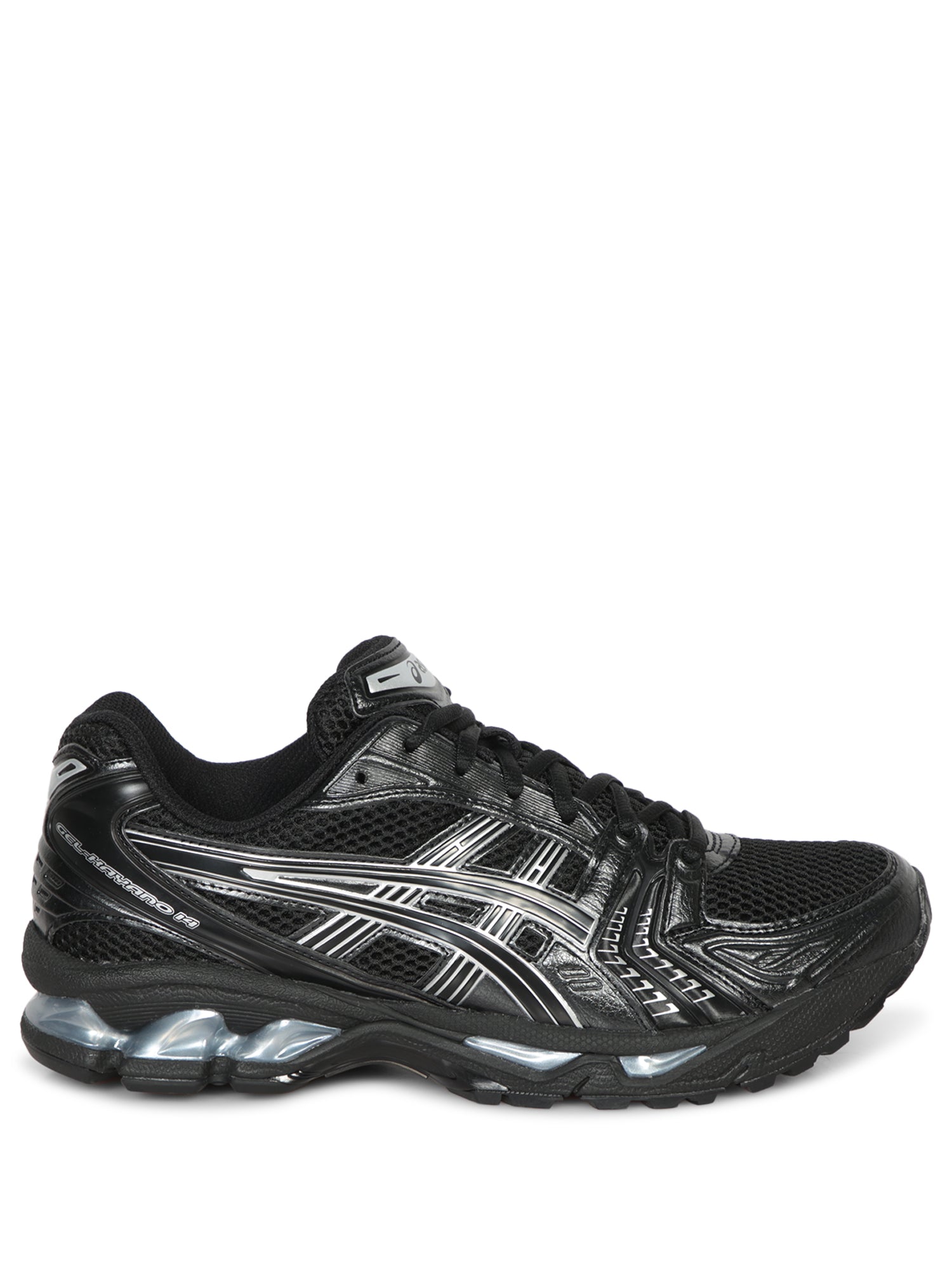 The ASICS Gel Kayano 14 in sleek black blends functionality with urban design. This model provides maximum comfort and support during runs with its advanced GEL technology.
