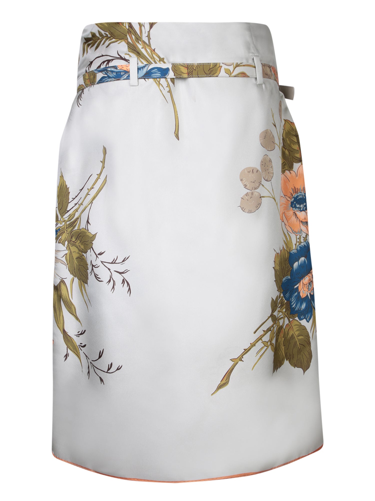 Twill skirt with floral print. Side closure with invisible zipper. Belt with buckle.