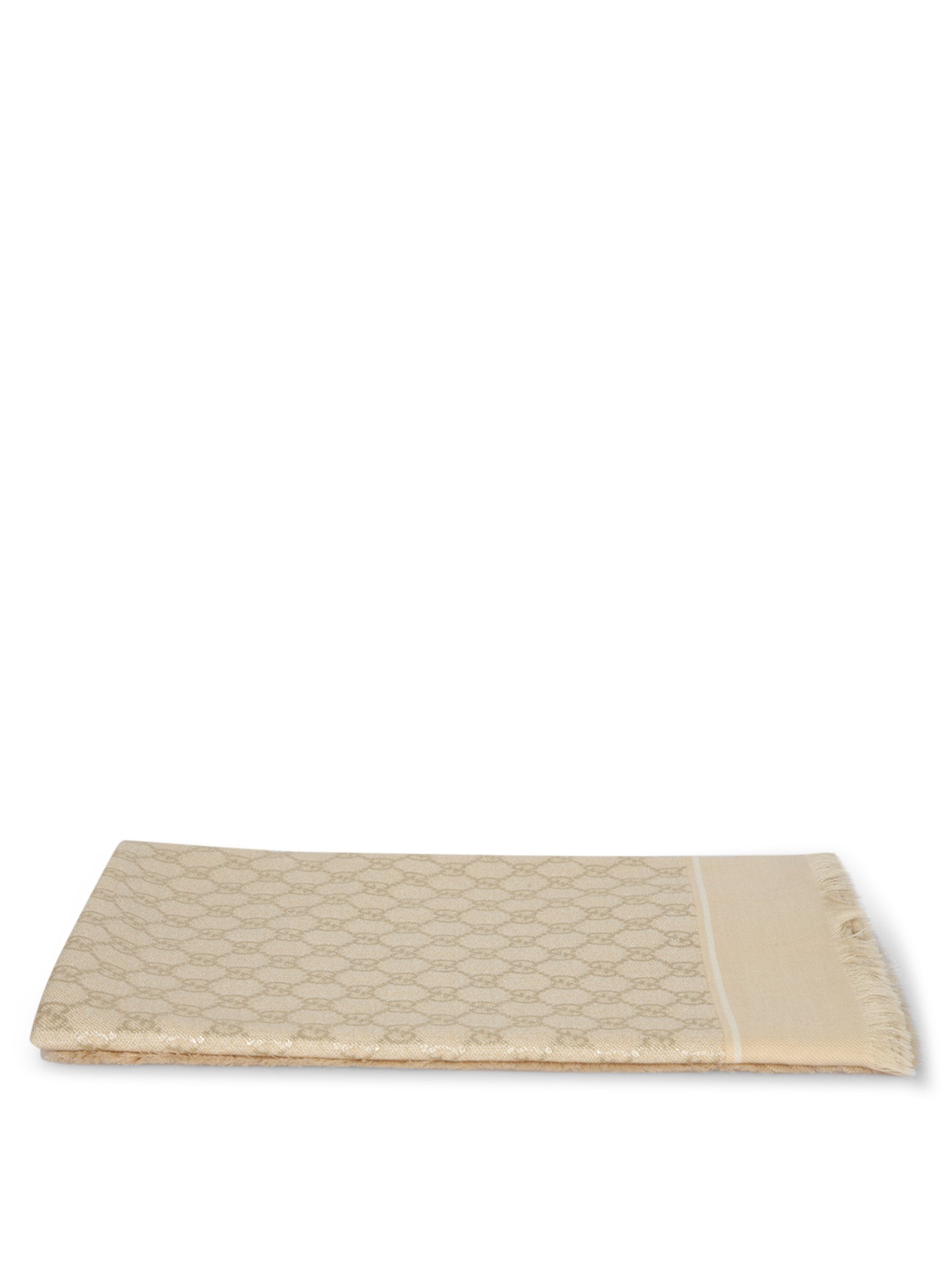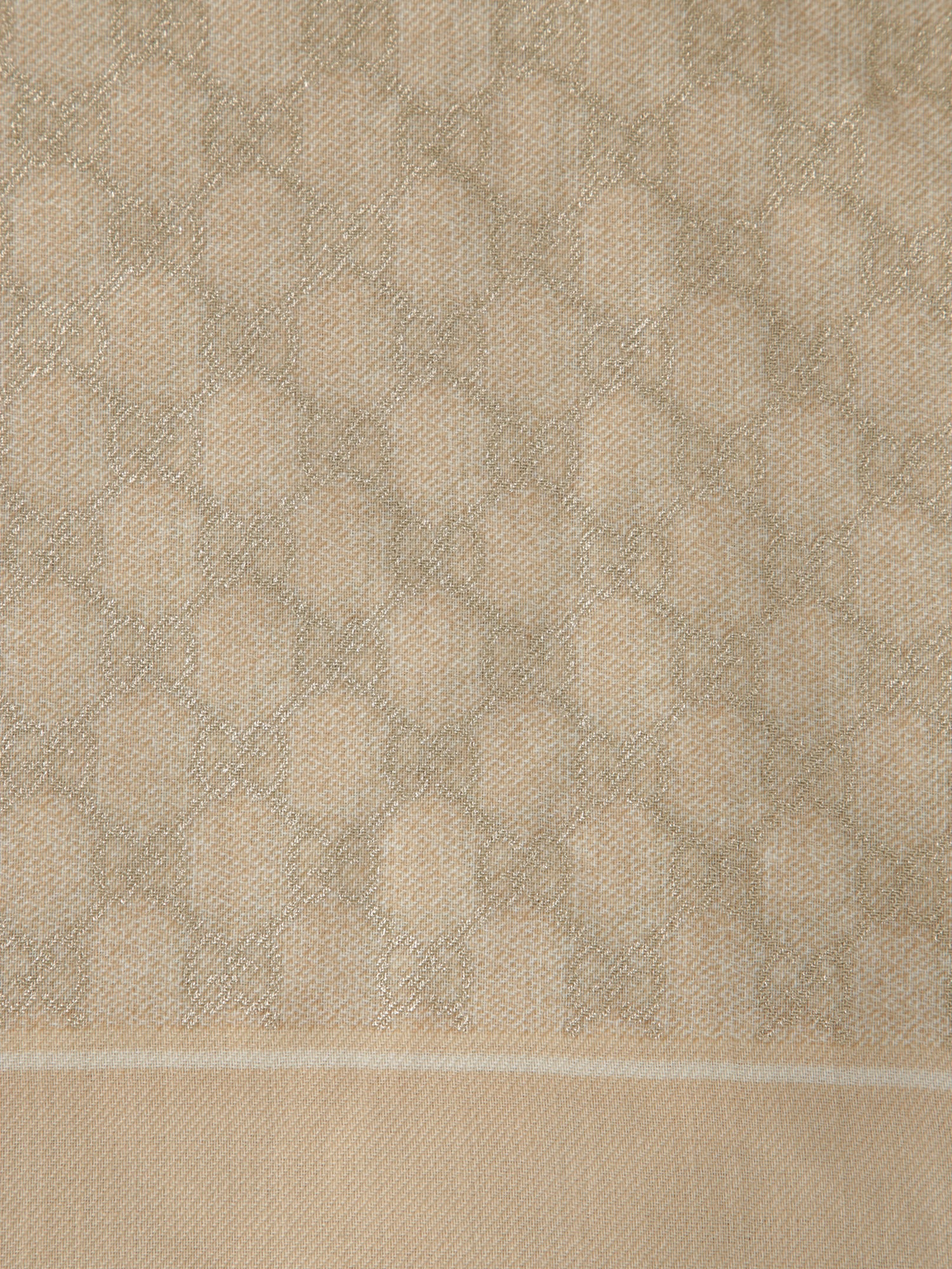 Wool scarf with tonal GG pattern. Fringed edges. Beige color.