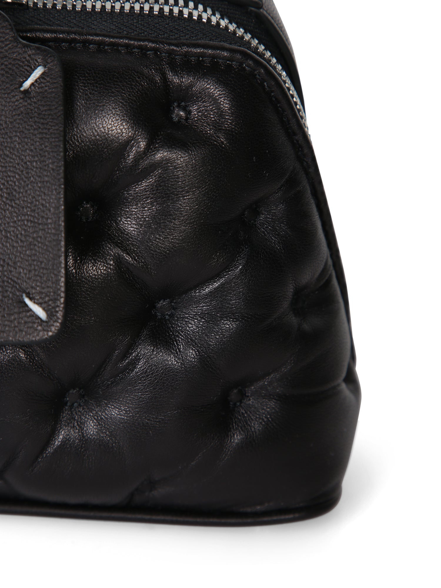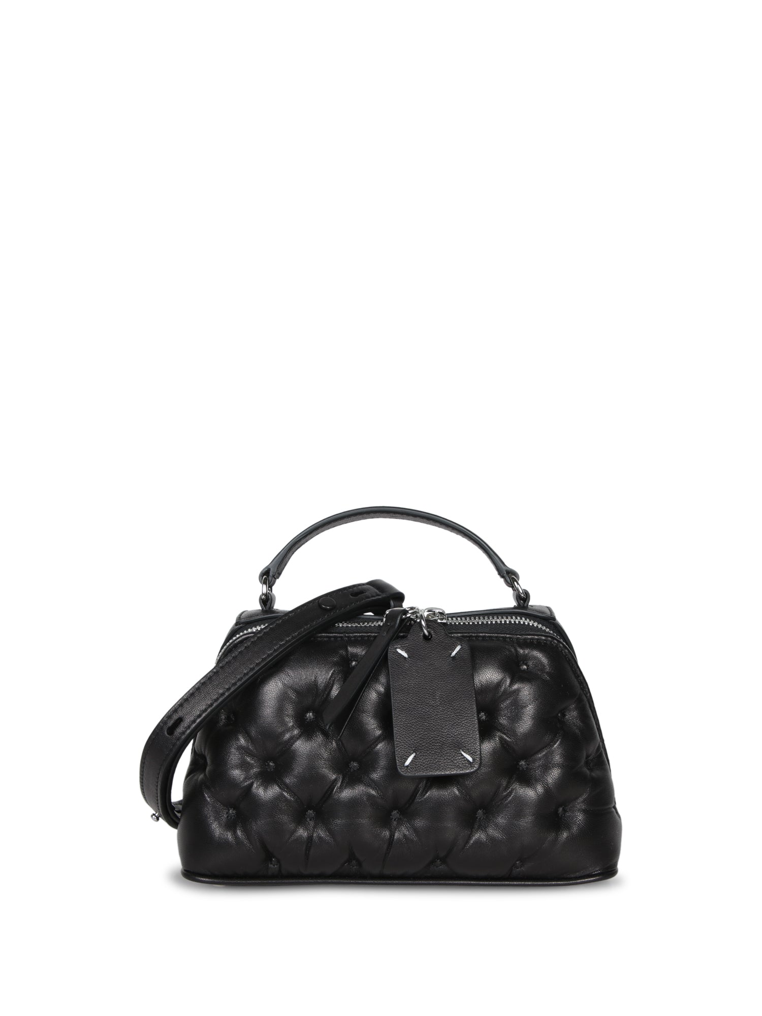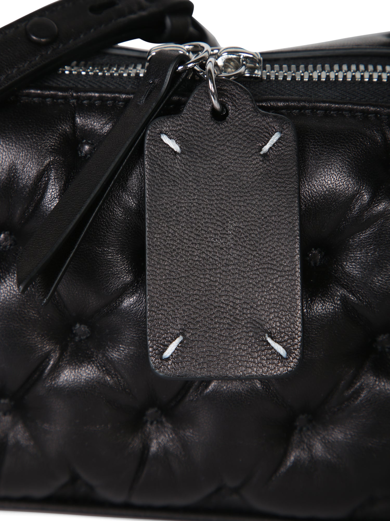This elegant quilted Maison Margiela bag is crafted from soft black leather with meticulous detailing, offering a sophisticated design that combines practicality with understated luxury.