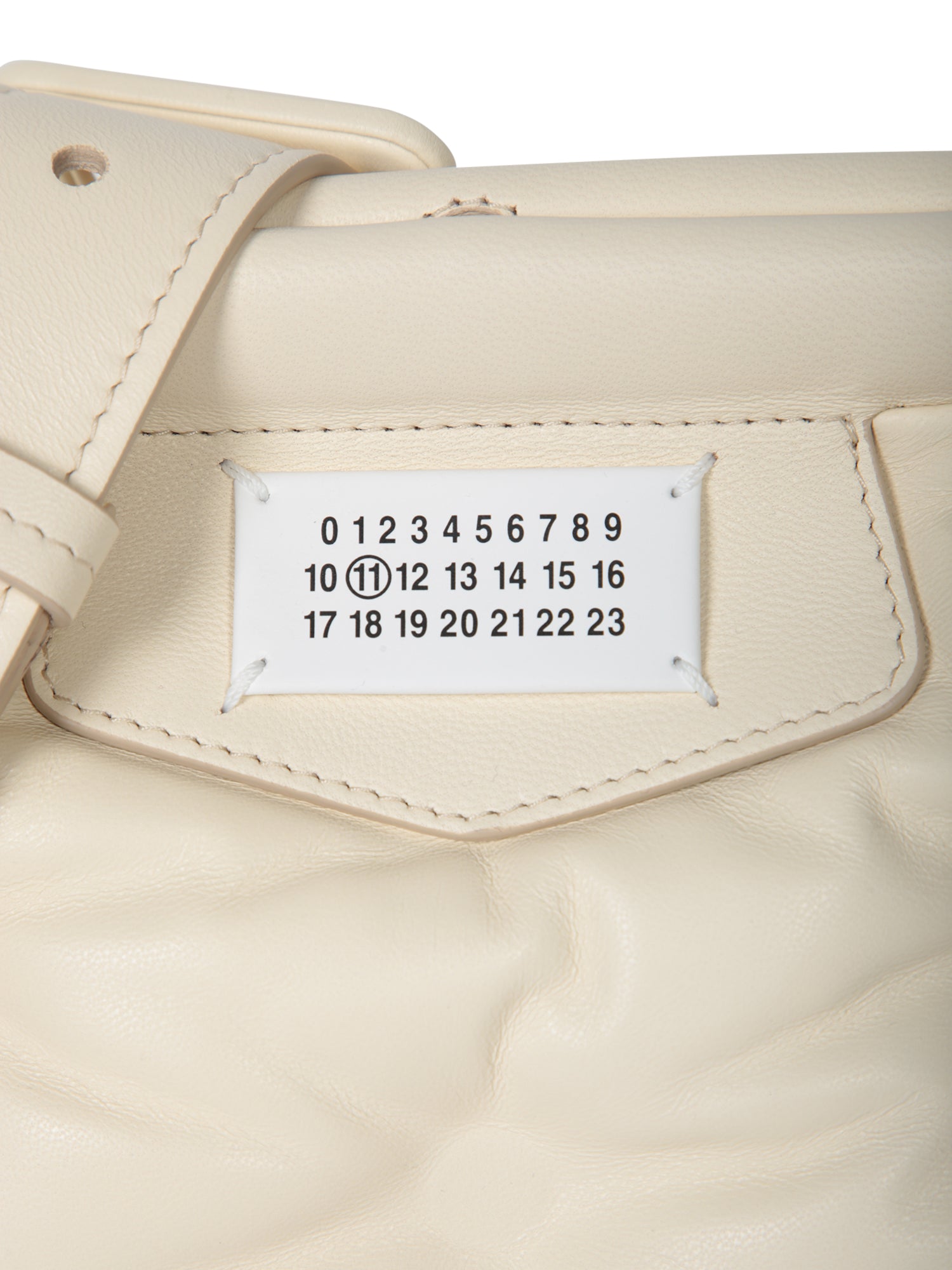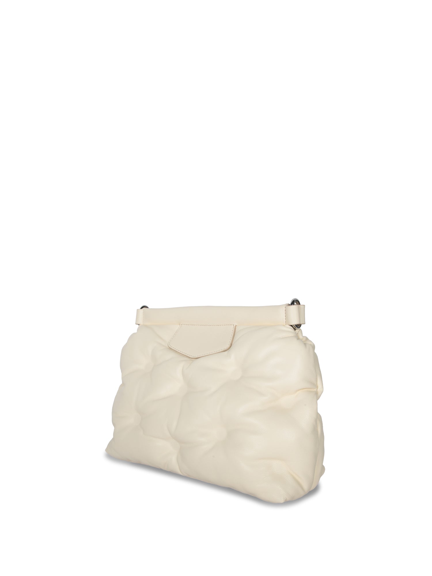 Designed by Maison Margiela, this 'Glam Slam Small' bag is crafted in soft quilted cream leather. Featuring a versatile shoulder strap, it stands out with a decorative flap that showcases the brand's distinctive logo.