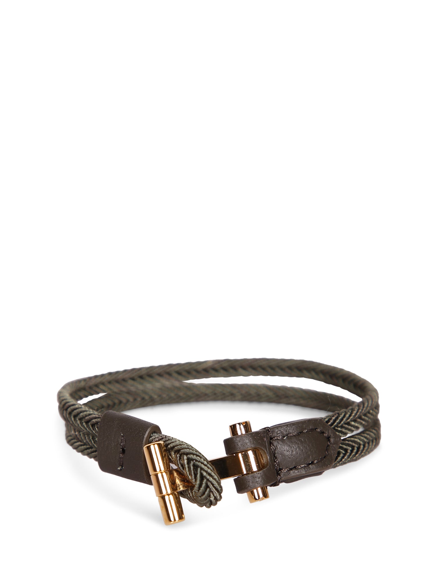 Green braided nylon bracelet. Magnetic closure in leather and golden metal.