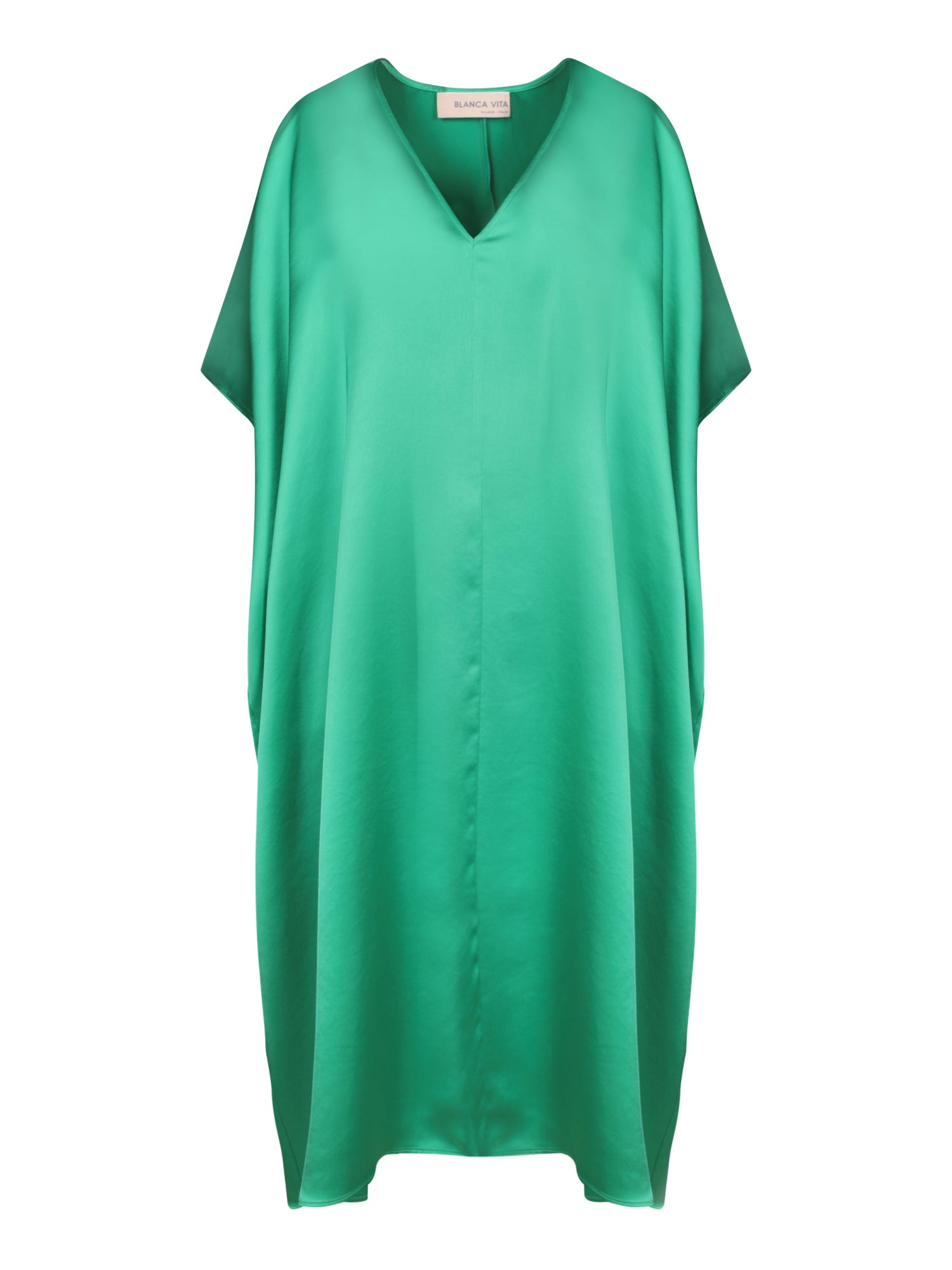Kaftan with a V-neckline. Made from glossy satin. Wide and comfortable cut.