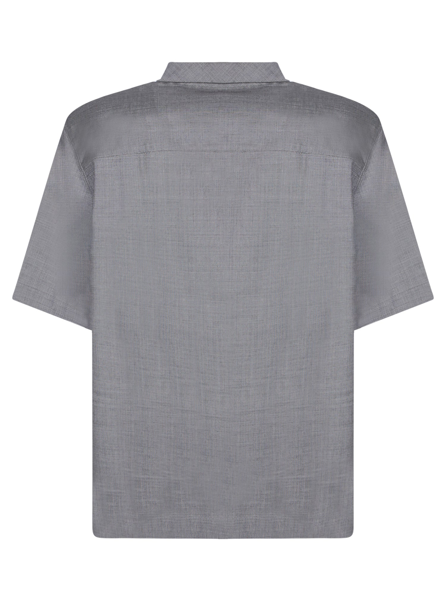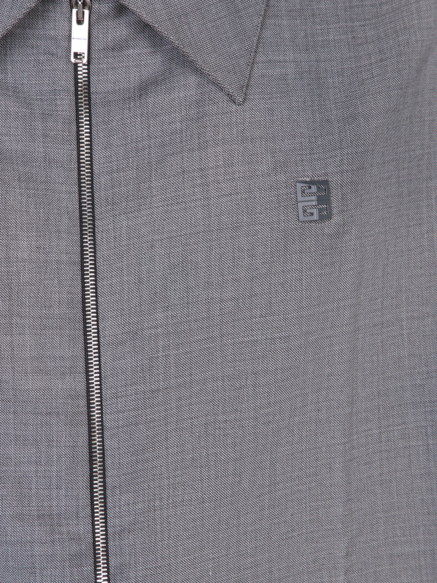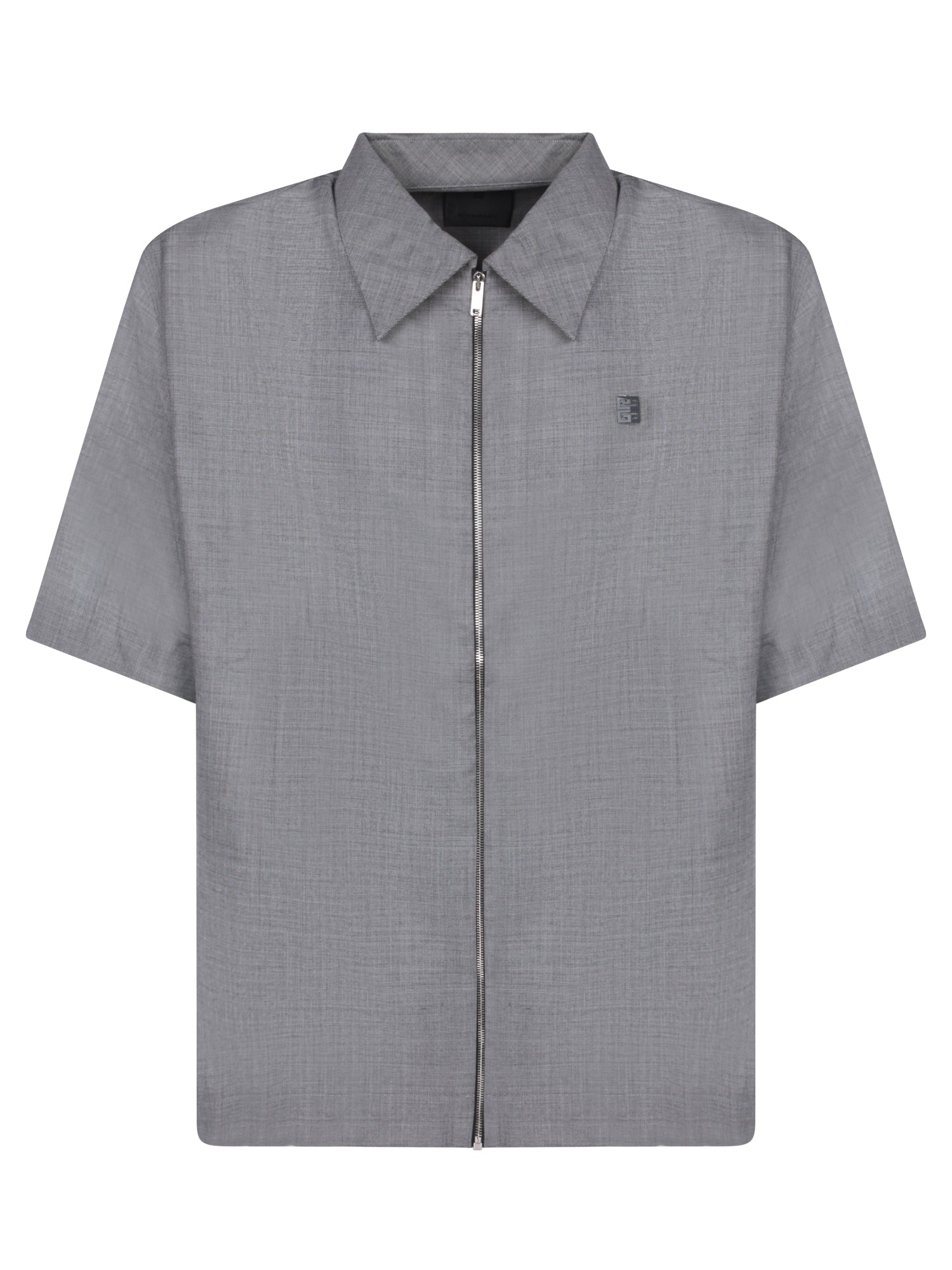 Shirt with pointed collar. Front zip closure. Short sleeves.