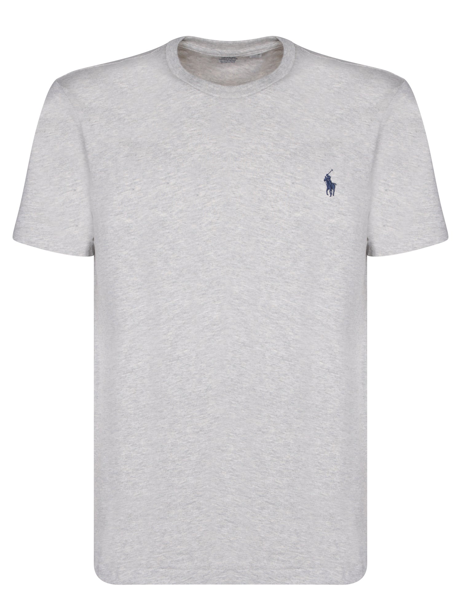 Short-sleeve, crew-neck grey mélange cotton t-shirt. Features an embroidered logo on the chest.