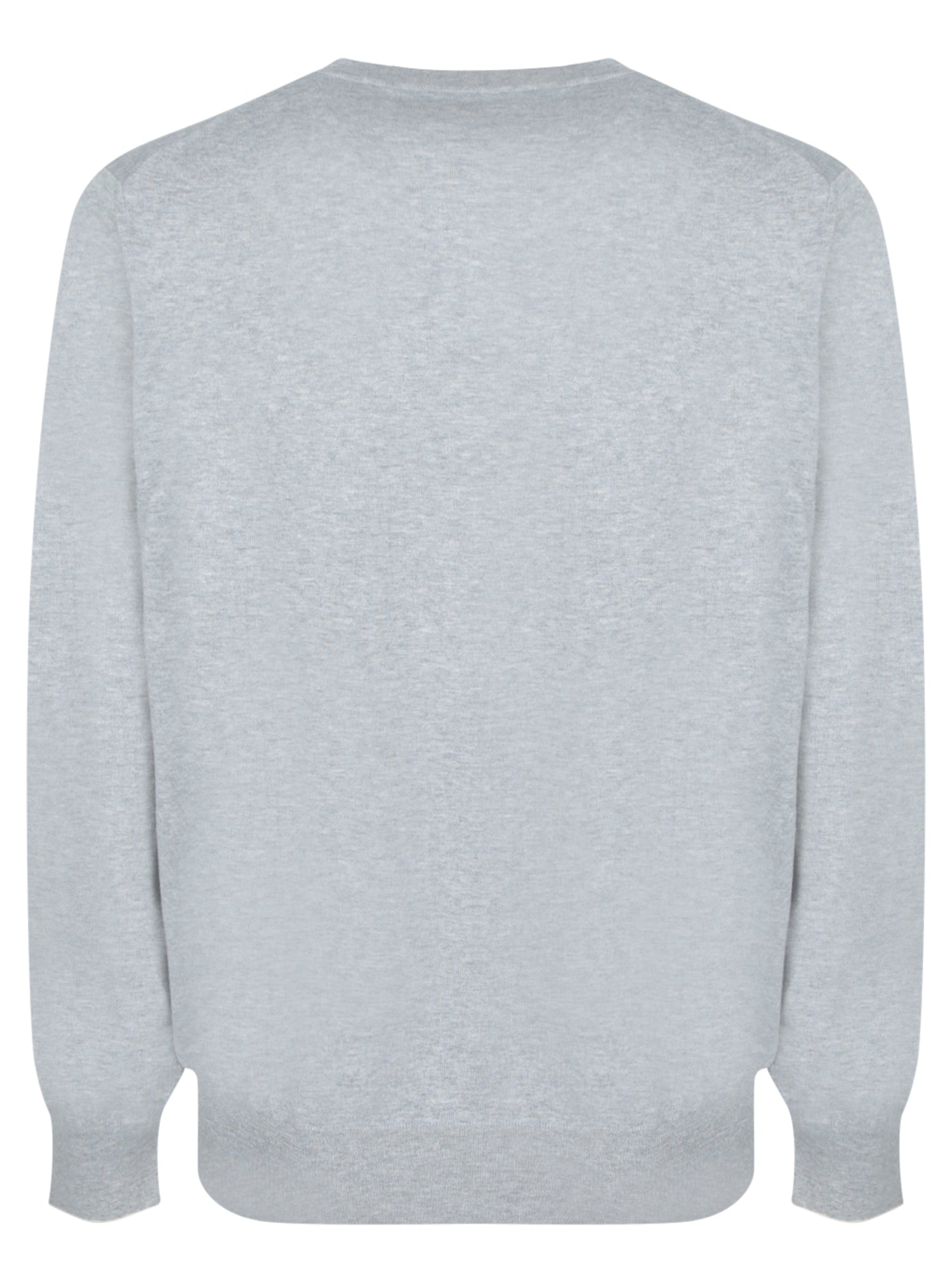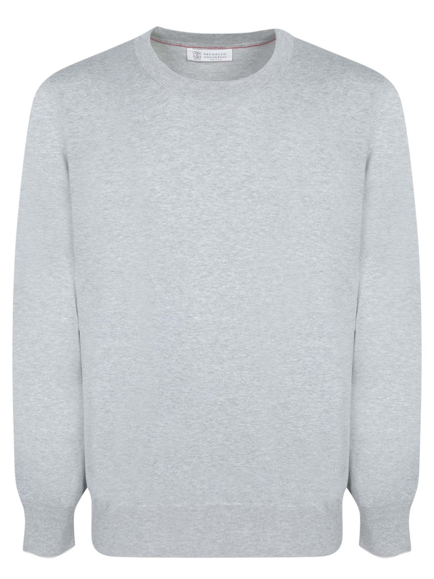 Exclusive Brunello Cucinelli grey cotton sweater, featuring a clean and minimal design with ribbed finishes that ensure a comfortable fit with a touch of understated elegance.