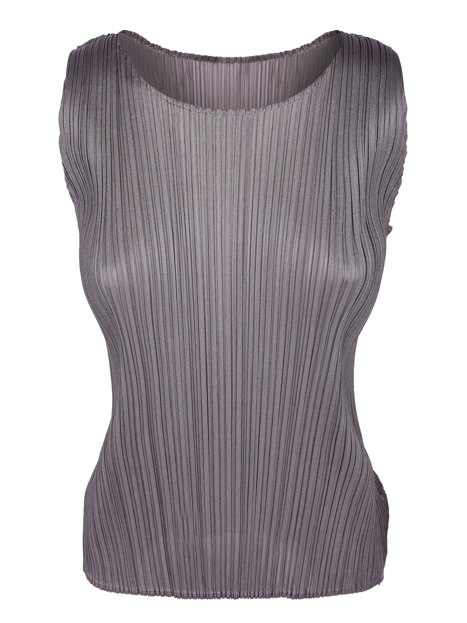 Sleeveless. Pleated texture. Slim fit.