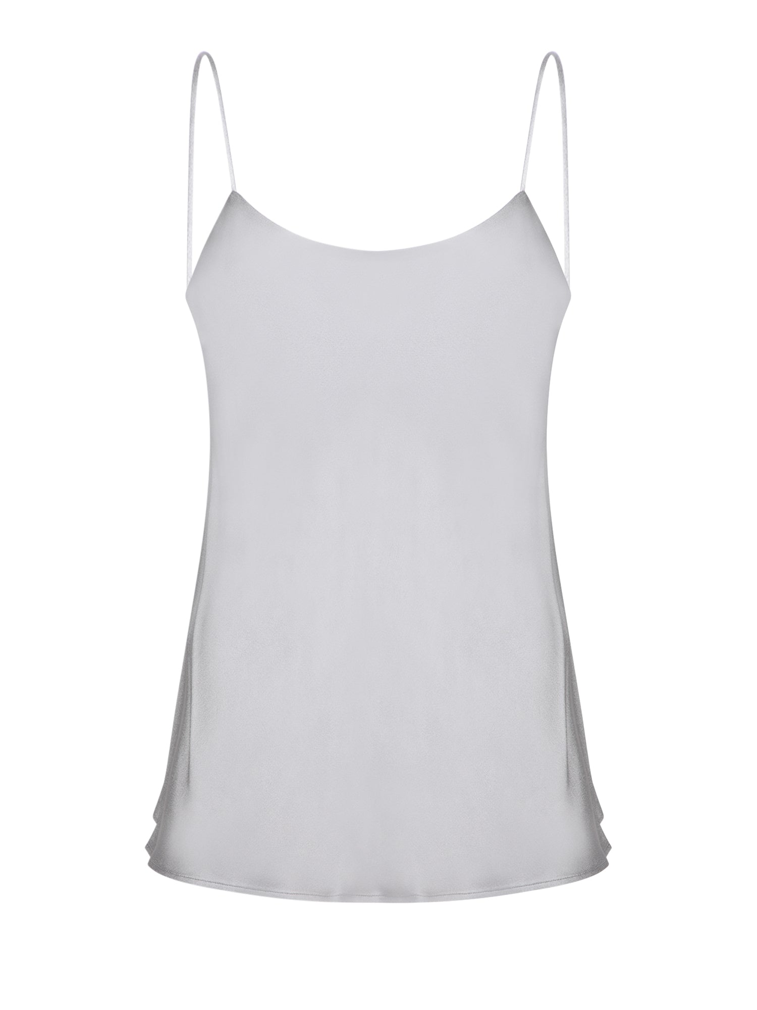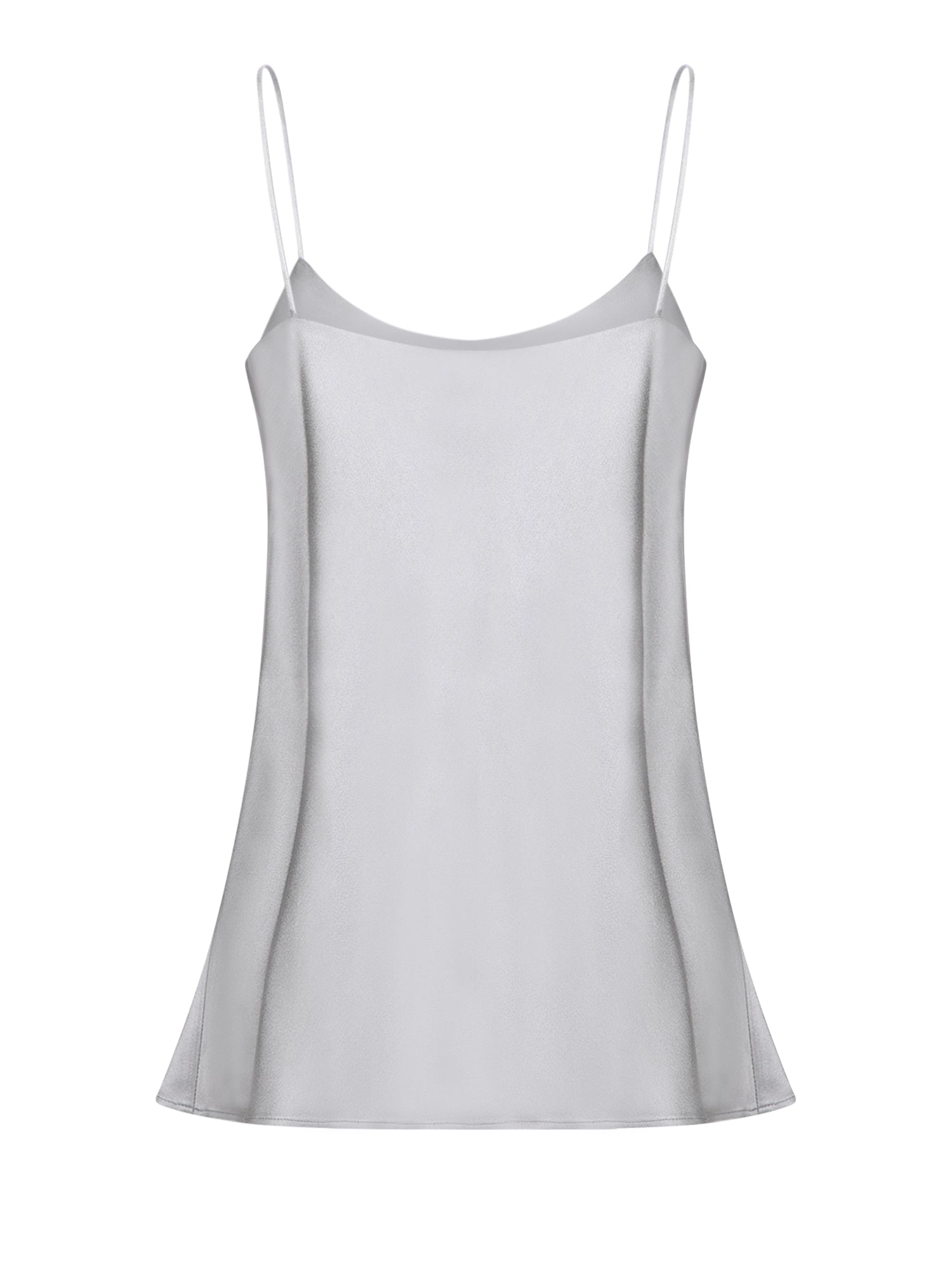 This Herno blouse stands out for its minimalist elegance, crafted in smooth grey satin that drapes fluidly, perfect for a sophisticated evening or a classy event.
