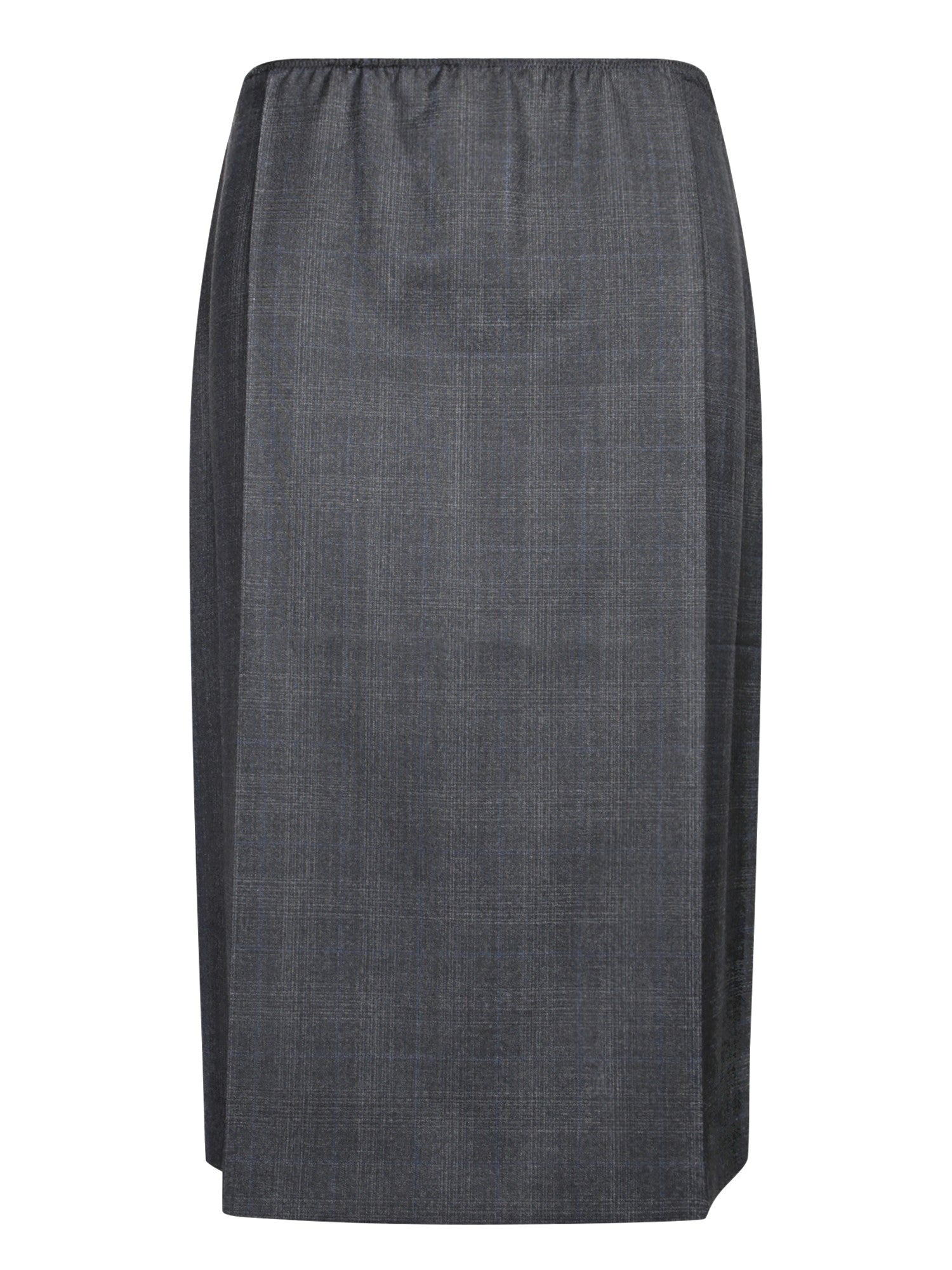 Tailored long skirt. Made from grey wool fabric. Hidden back closure.