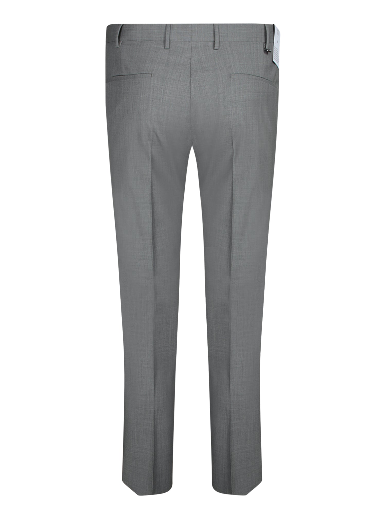 Timeless elegance with these PT Torino mid grey tropical wool trousers, perfect for a business wardrobe. Features a refined silhouette with a front crease for a clean, professional look.
