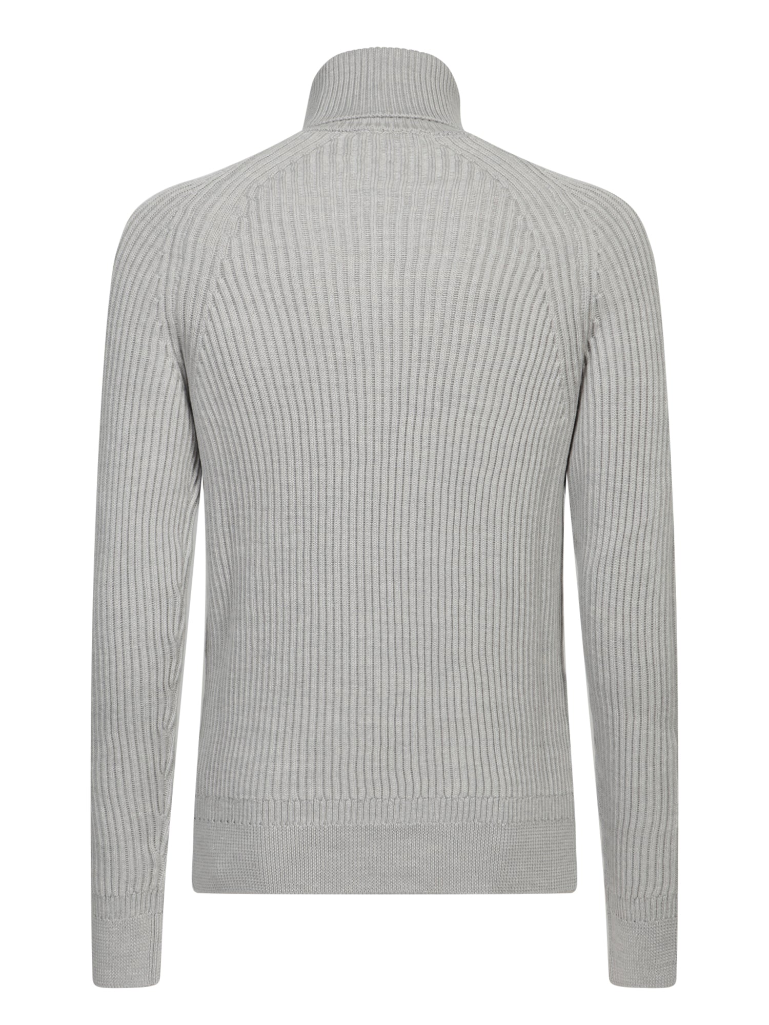 Elegant ZANONE light grey knitted sweater featuring a refined turtleneck and exquisite craftsmanship for a sophisticated and comfortable look.