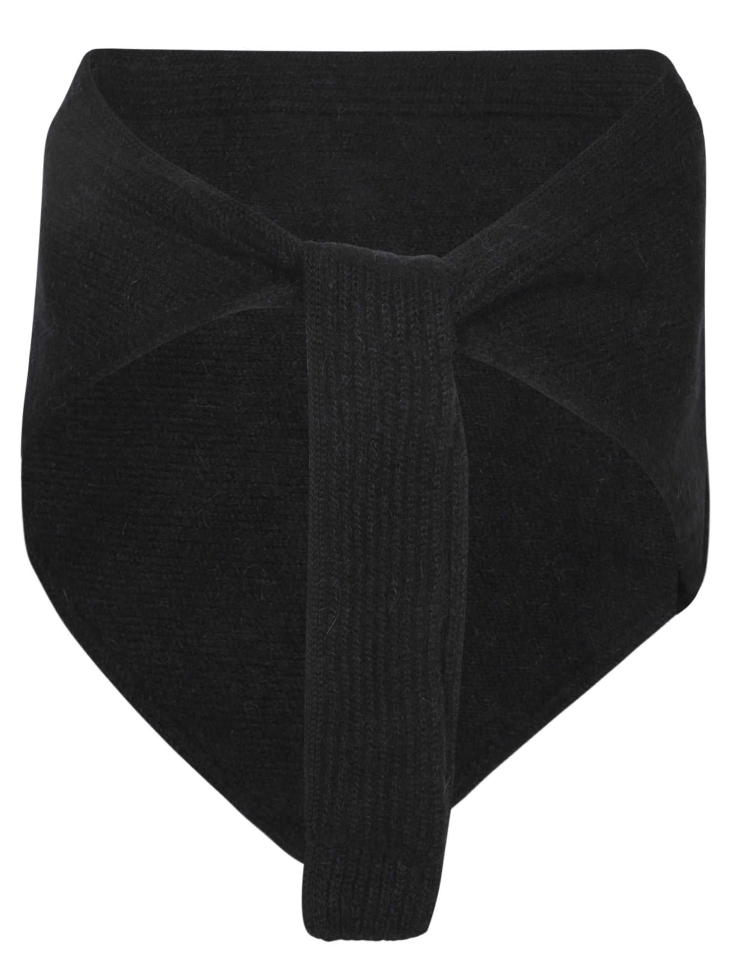 Knitted wool shawl. Gros grain finish with frontal knot.