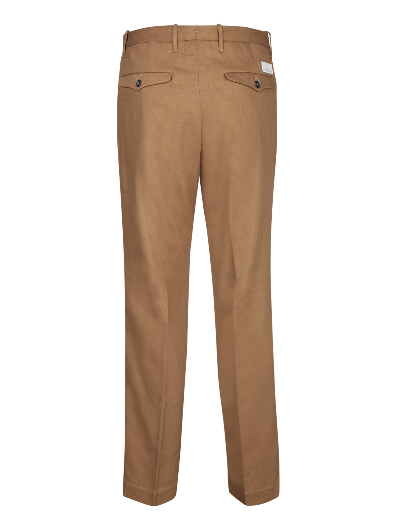 Crafted from fine linen twill, these NINE IN THE MORNING trousers provide a clean and sophisticated silhouette, finished in a warm hazelnut hue that adds a touch of refined style to your everyday wardrobe.