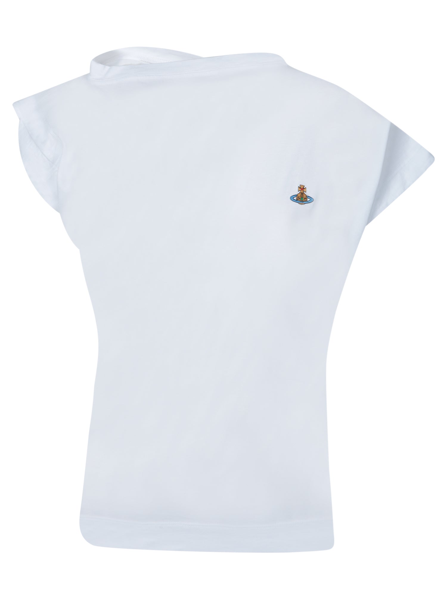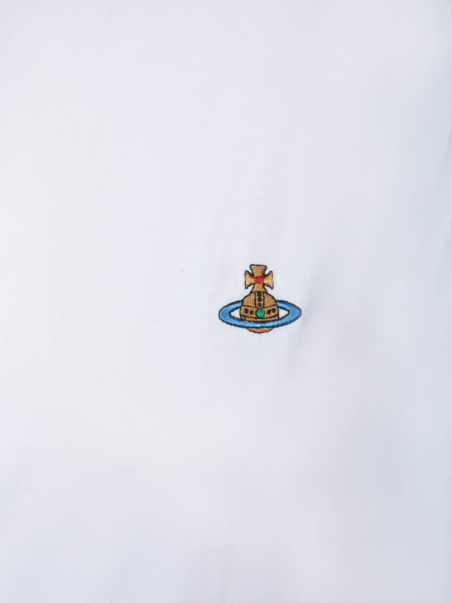 This elegant white T-shirt from Vivienne Westwood, made from soft cotton, features a distinctive embroidered orb logo adding a unique classy touch. Perfect for a casual yet sophisticated look.
