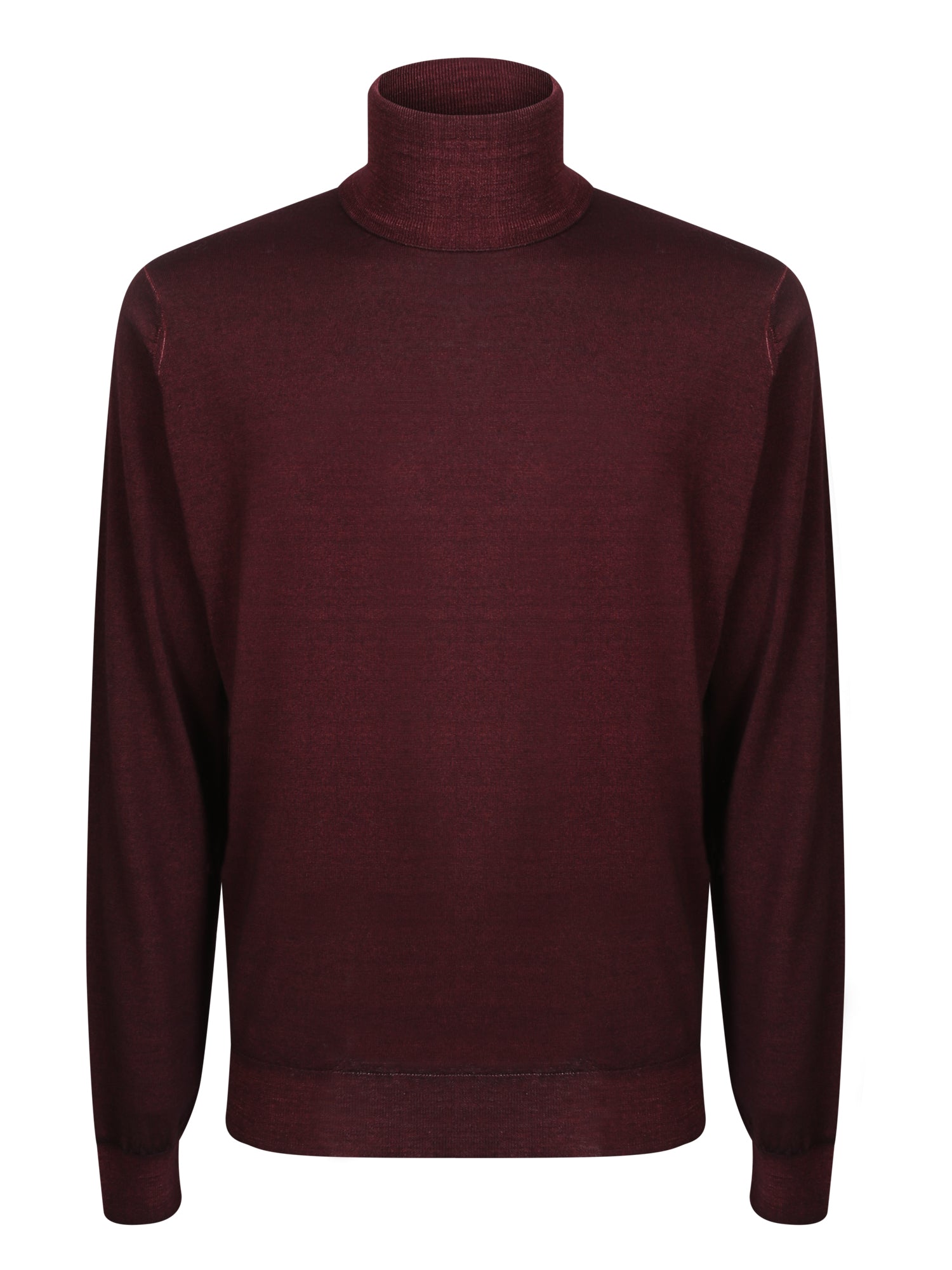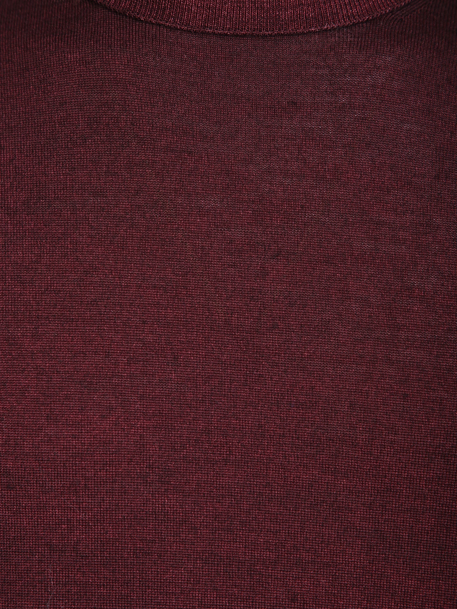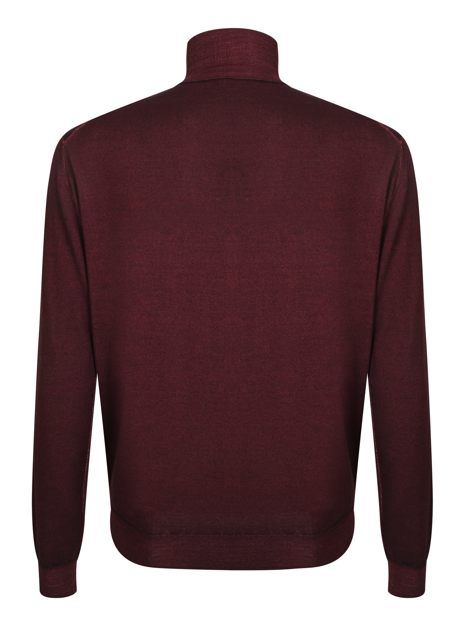 High collar. Long sleeves. Knit construction. Ribbed neck. Ribbed edge. Ribbed cuffs. Straight hem. Color: wine