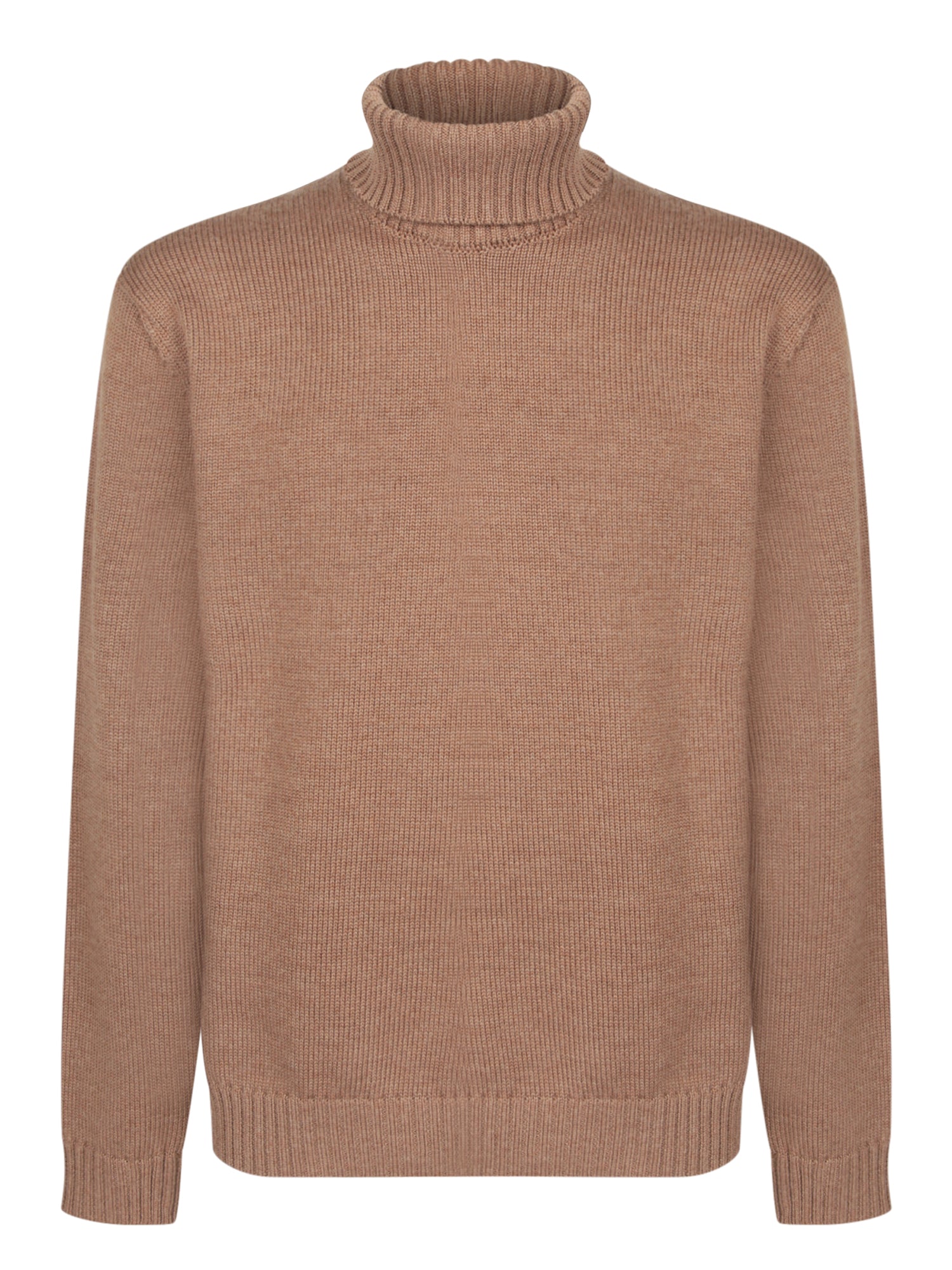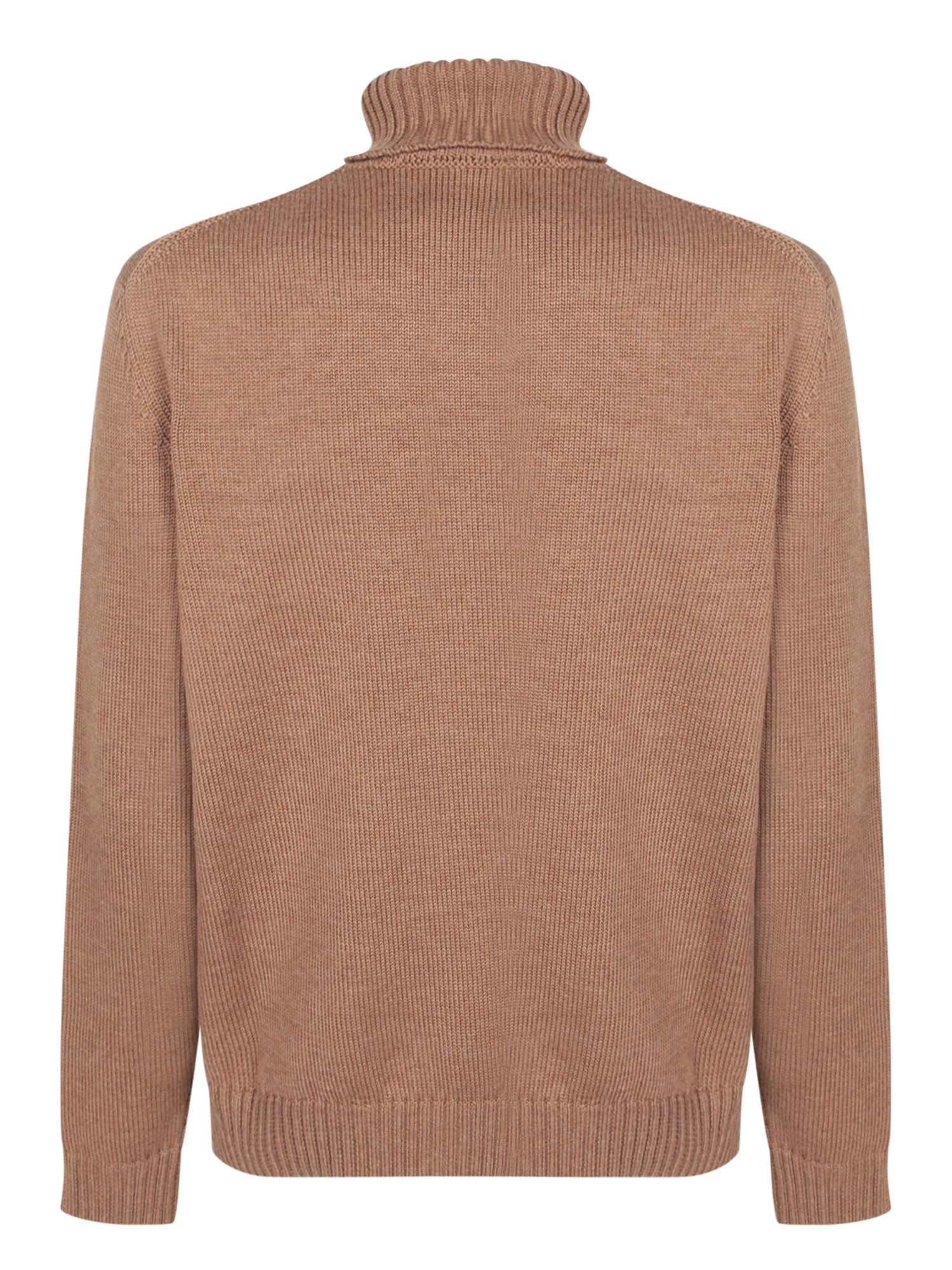 Merino wool sweater with ribbed high neck. Long sleeves and elasticated hem.