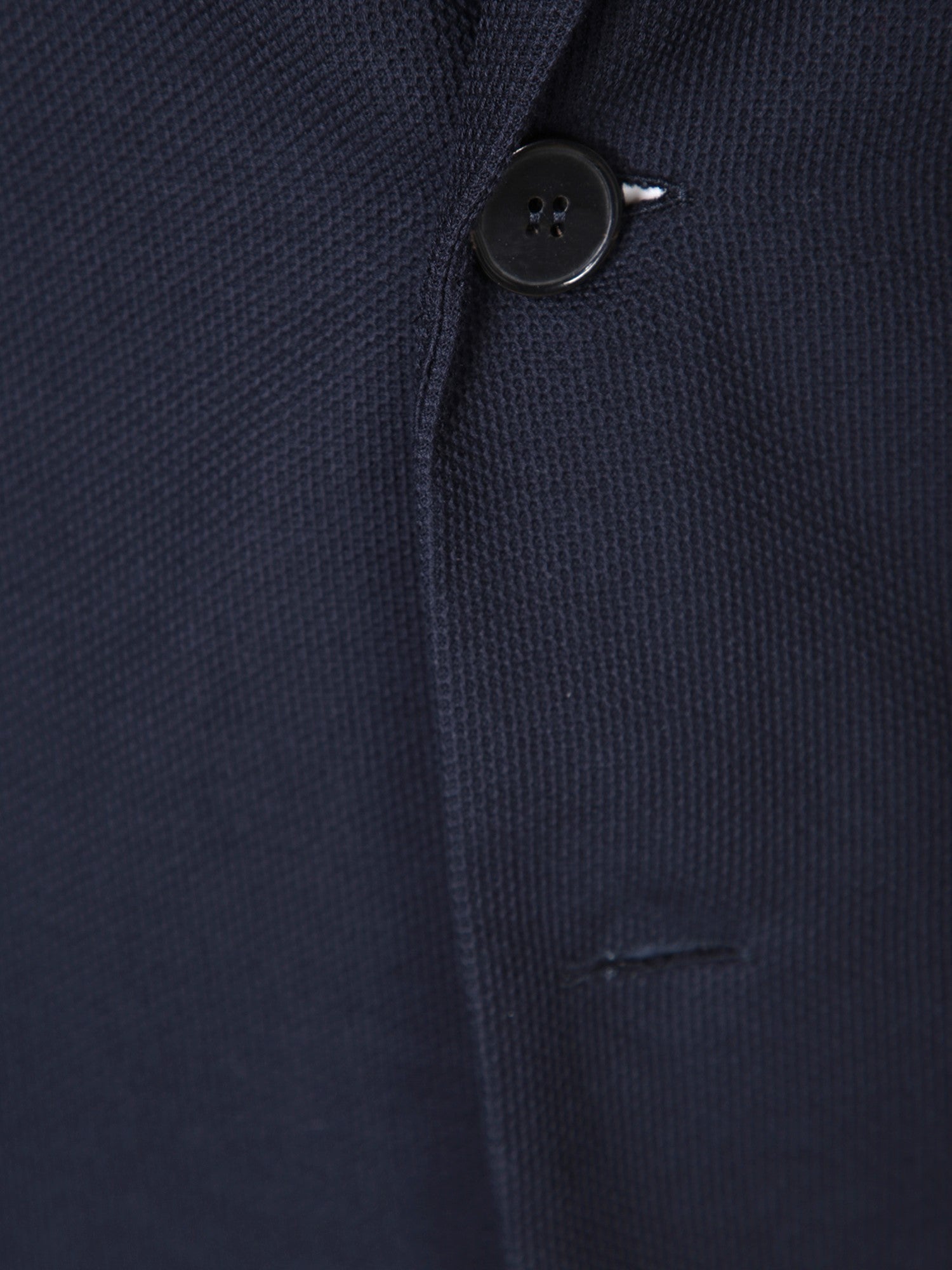 Structured honeycomb pattern jacket. Two-button front fastening. Side flap pockets.