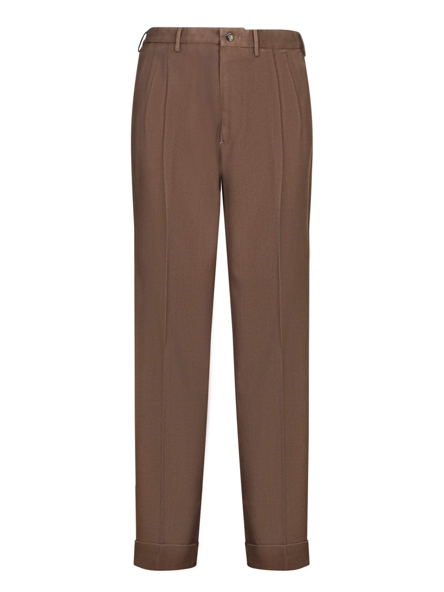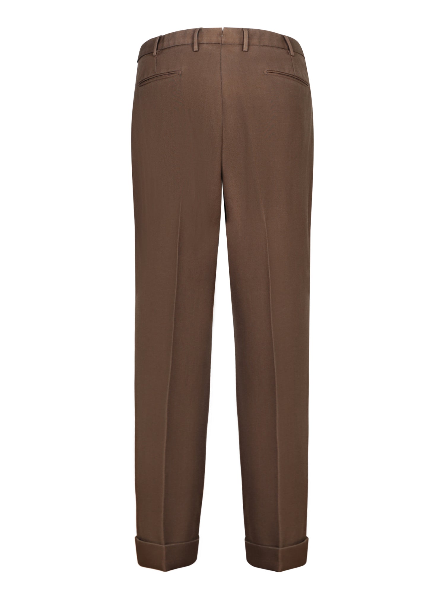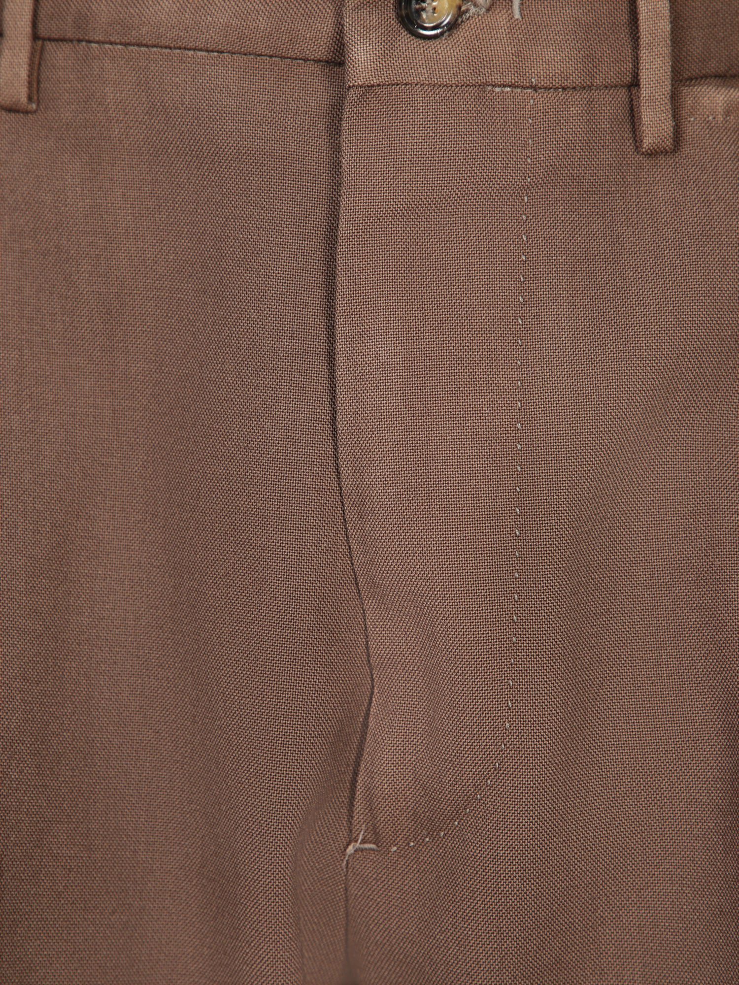 Elegant wide leg pants crafted in richly textured hopsack fabric, ideal for formal events or a polished professional look. They blend comfort and style with a relaxed fit and versatile fango color.