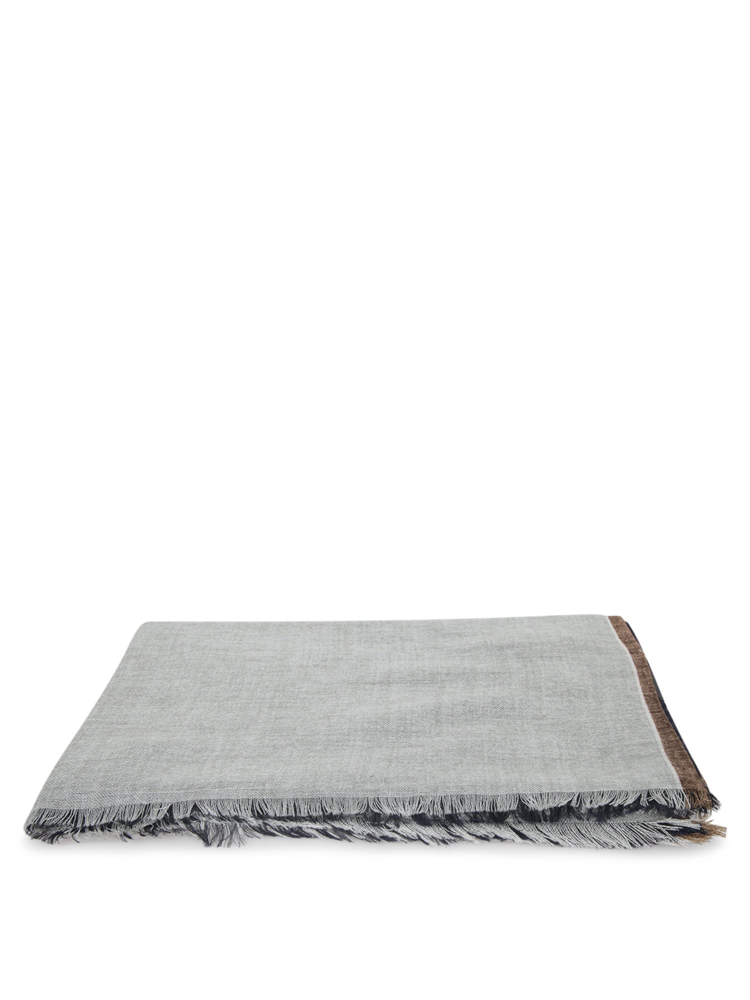 Soft and refined wool scarf with fringes and contrasting brown edges.